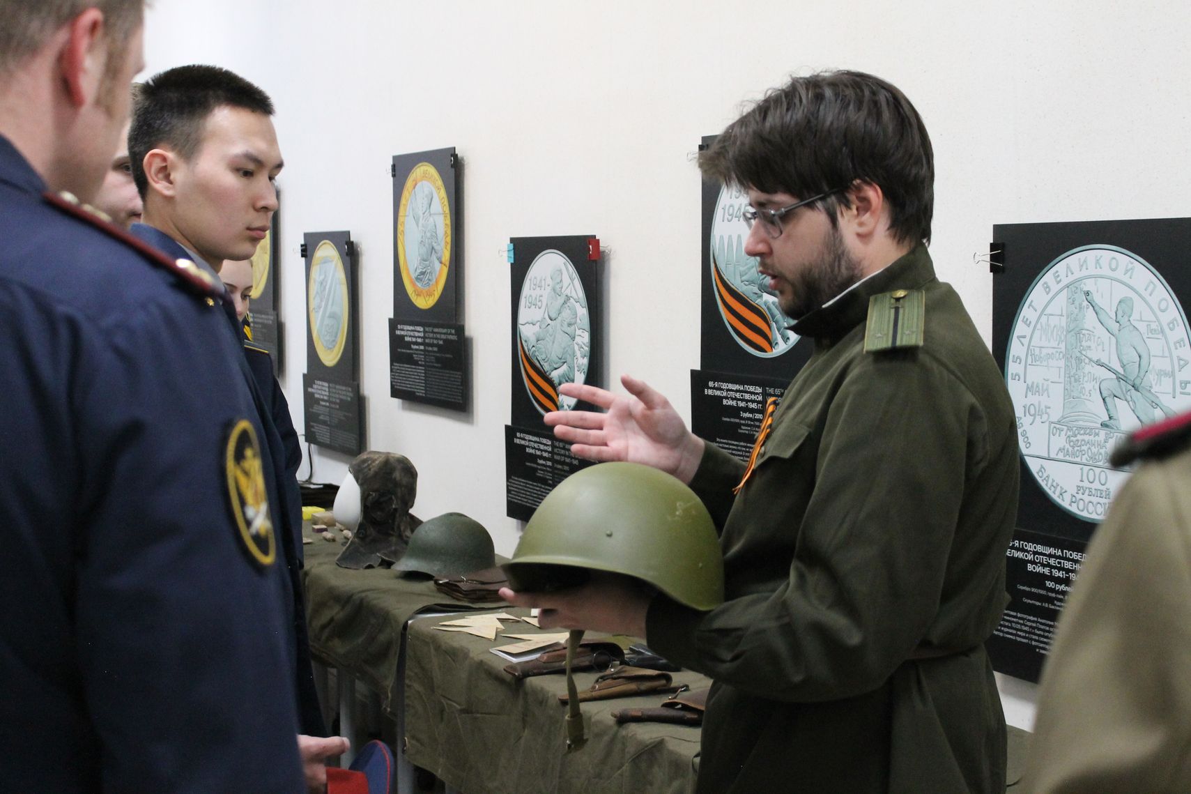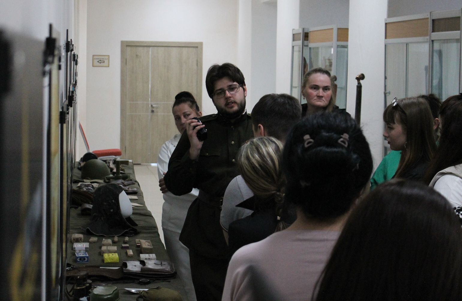 Несколько групп посетили выставку «Минувших дней живая память». На ней были представлены макеты оружия времен войны, элементы амуниции, бытовые принадлежности бойцов РККА, фронтовые письма, учебники для бойцов по разным родам войск. Экскурсию по выставке проводил преподаватель кафедры истории, археологии и краеведения Гуманитарного института ВлГУ Александр Иванов вместе со своими студентами, одетыми в форму солдат разных временных этапов, наглядно демонстрируя её видоизменения.