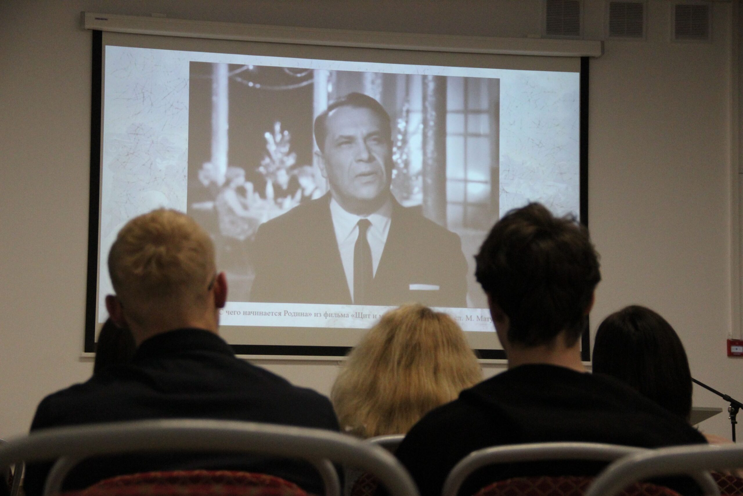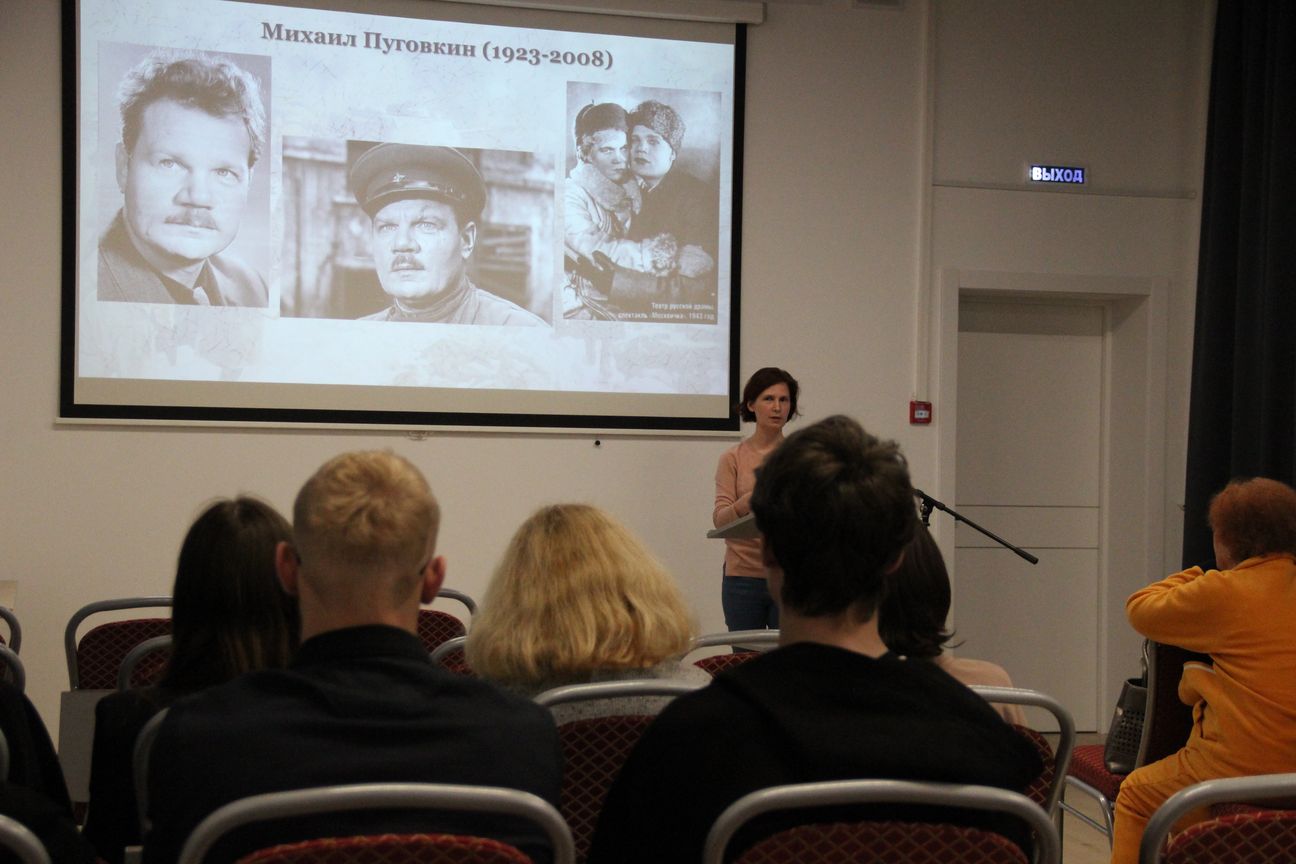 Киночас «Война глазами артистов» посетили студенты Строительного колледжа и члены Союза пенсионеров России. Они познакомились с воспоминаниями советских артистов, которые во время Великой Отечественной войны участвовали в боевых действиях. Среди них такие известные актеры как Юрий Никулин, Зиновий Гердт, Владимир Басов, Михаил Пуговкин, Алексей Смирнов. Звучали воспоминания тех артистов, кто принимал участие во фронтовых бригадах: Александра Граве, Татьяны Панковой, Киры Головко. Гости посмотрели видеофрагменты из художественных фильмов с участием актеров-фронтовиков: «Хроника пикирующего бомбардировщика», «Битва за Москву», «Они сражались за Родину», «Солдат Иван Бровкин», «В бой идут одни старики», «Живые и мертвые».