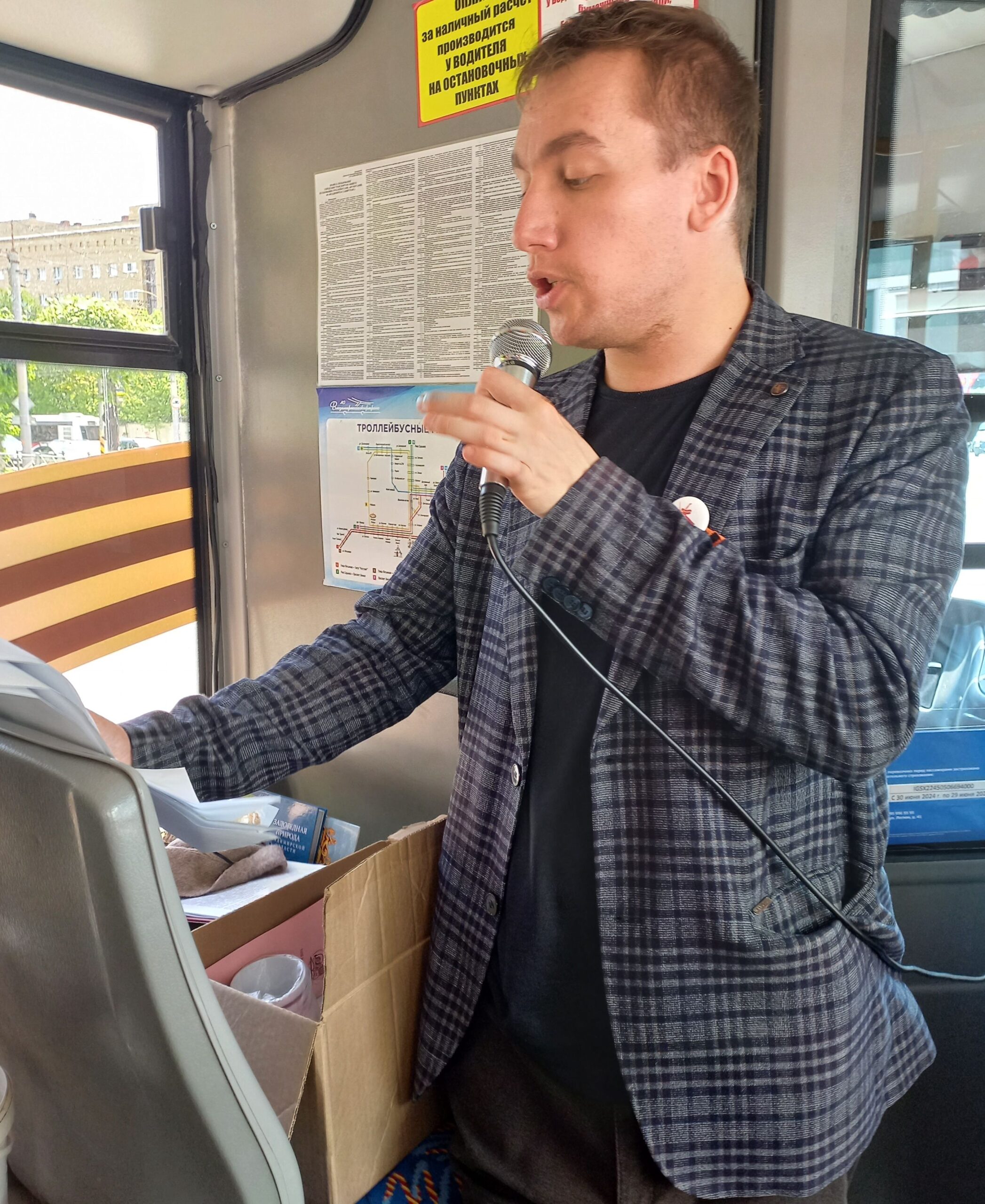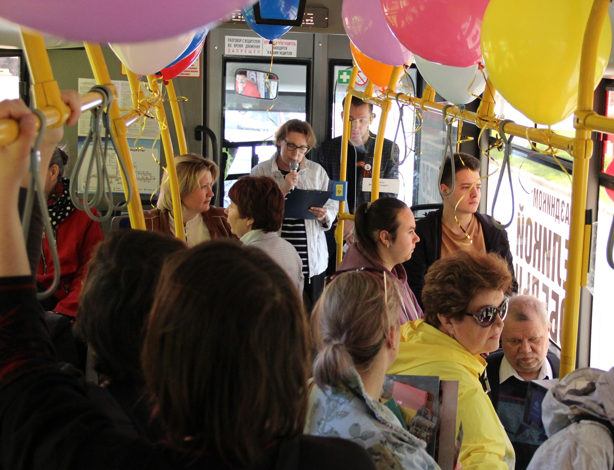 21 мая отправился в рейс традиционный библиотечный Литературный троллейбус. Как всегда, он вышел в рейс в преддверии сразу нескольких праздников: Дня славянской письменности и культуры и, конечно, празднованием 80-летия Победы в Великой Отечественной войне. Мы начали маршрут с площади Победы, вспоминая героев-фронтовиков, чьими именами названы улицы города. Пассажиры услышали рассказы о подвиге Евгения Пичугина и Николя Гастелло, о дикторе Юрии Левитане и других знаменитых владимирцах, чья судьба неразрывно связана с историей Победы. Пассажиры вместе с библиотекарями говорили о военной истории города, узнавали подробности тыловой жизни владимирцев, вспоминали о героических защитниках Родины. Помимо отрывков из прозаических произведений о войне, звучали фрагменты воспоминаний врачей и медсестер, работавших во владимирских госпиталях, а также стихи Святослава Павлова, 18-летнего инвалида войны, вернувшегося домой без обеих ног но нашедшего силы жить и творить в мирной жизни. Стихи о войне читал Владимир Котлецов, старший преподаватель кафедры истории, археологии и краеведения Гуманитарного института ВлГУ.