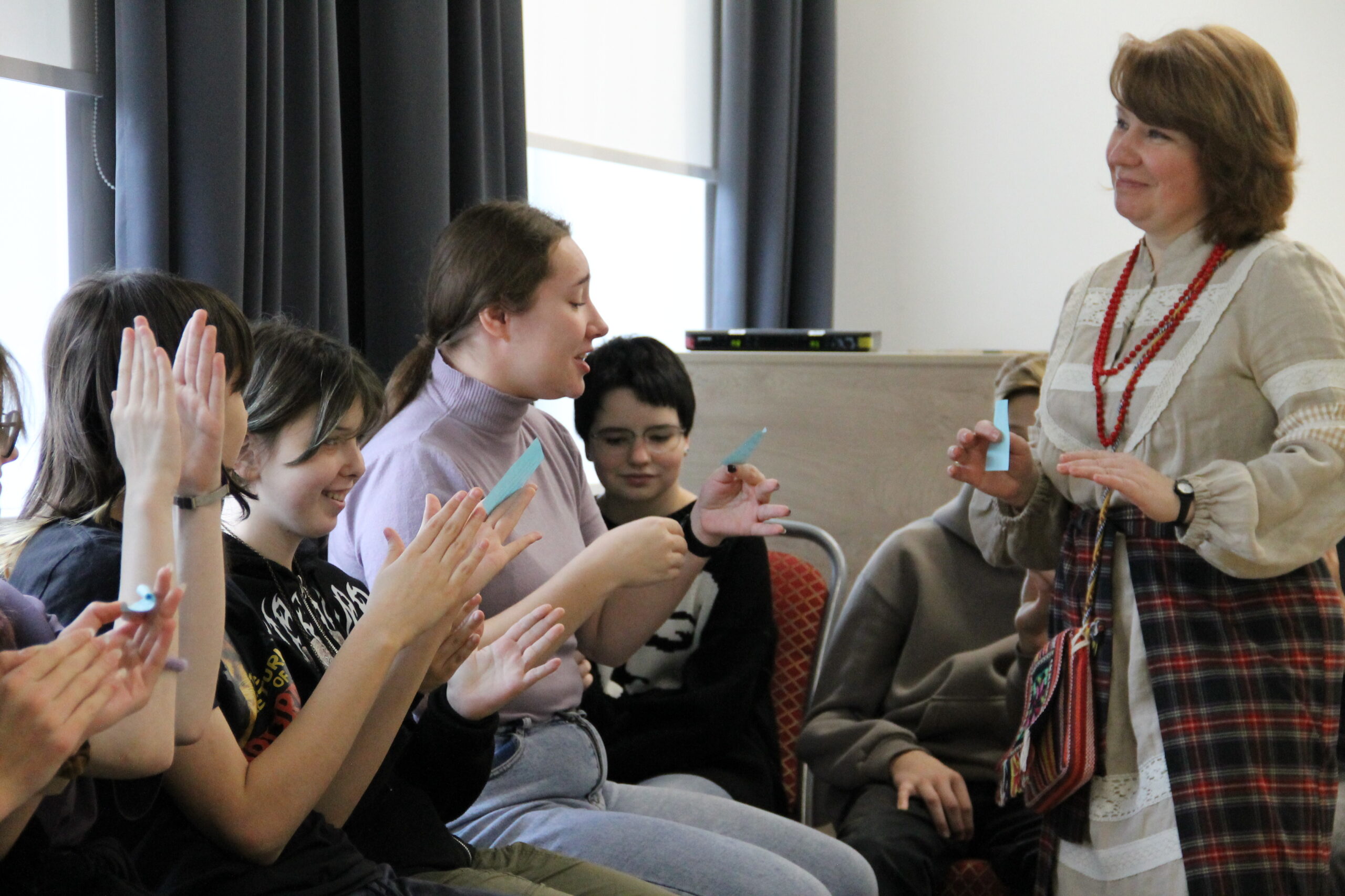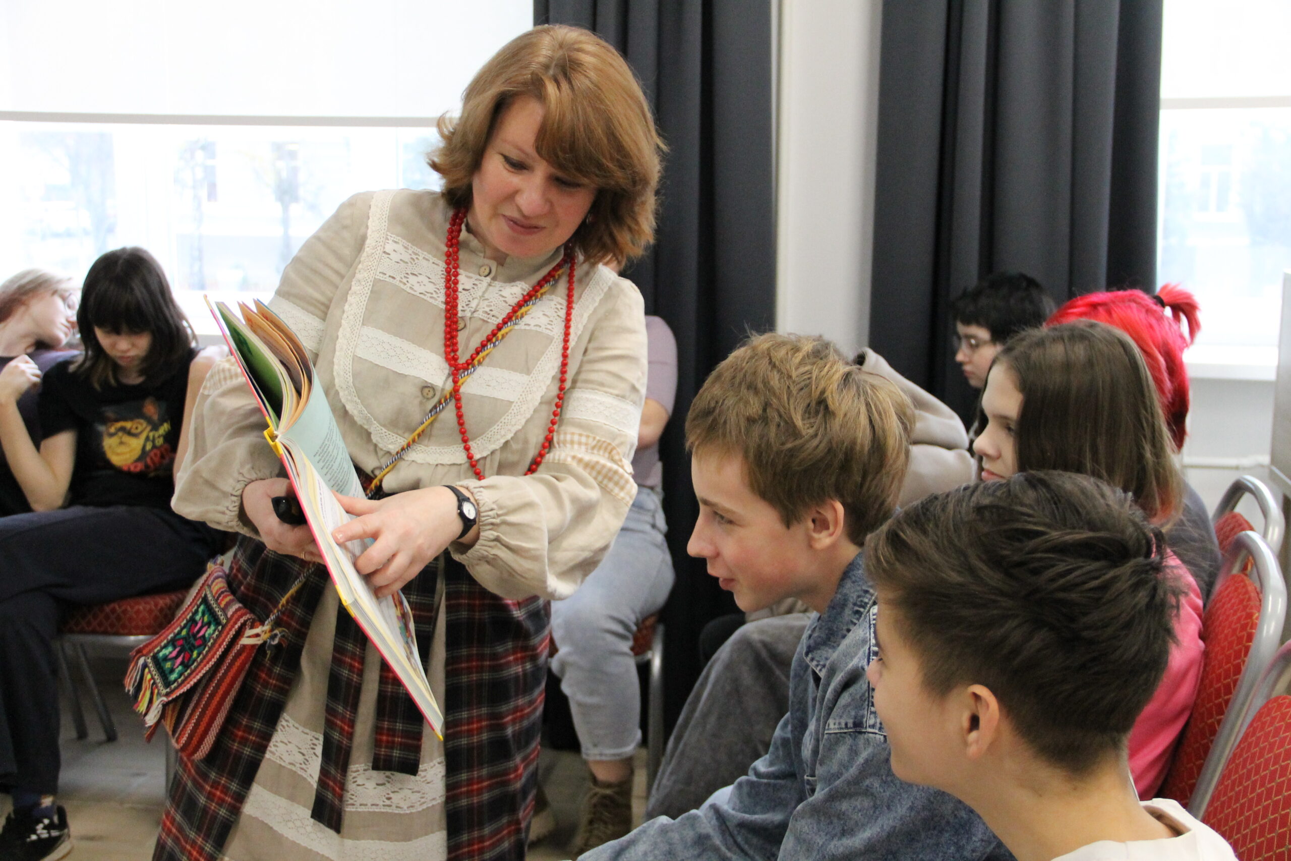 23 октября 2025 года в нашей библиотеке на фольклорно-игровой встрече «Задушевная вечорка» собрались ребята из семейного центра «СоВа».