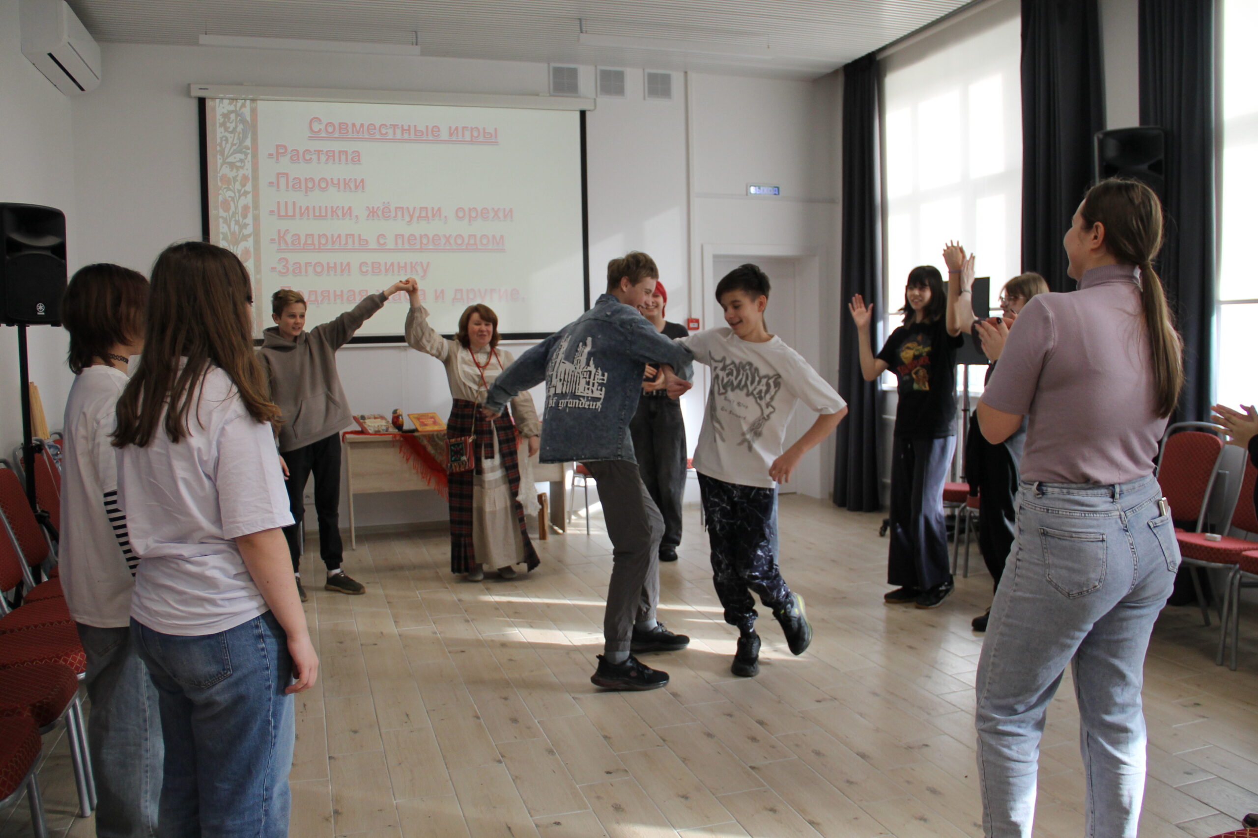 Вместе мы перенеслись в прошлое, узнали о традициях вечорок и супрядок, реконструировали пословицы и пели частушки, а потом устроили настоящую потеху в старых традициях. Русская вечорка — отличный способ показать молодецкую удаль. Ребята с удовольствием играли в «Парочки», перетягивали палки, красны девицы пекли блины и варили картошку (конечно, понарошку!) . Мы вспоминали, как отдыхала молодёжь во времена наших дедушек и бабушек, а так же прадедушек и прабабушек.