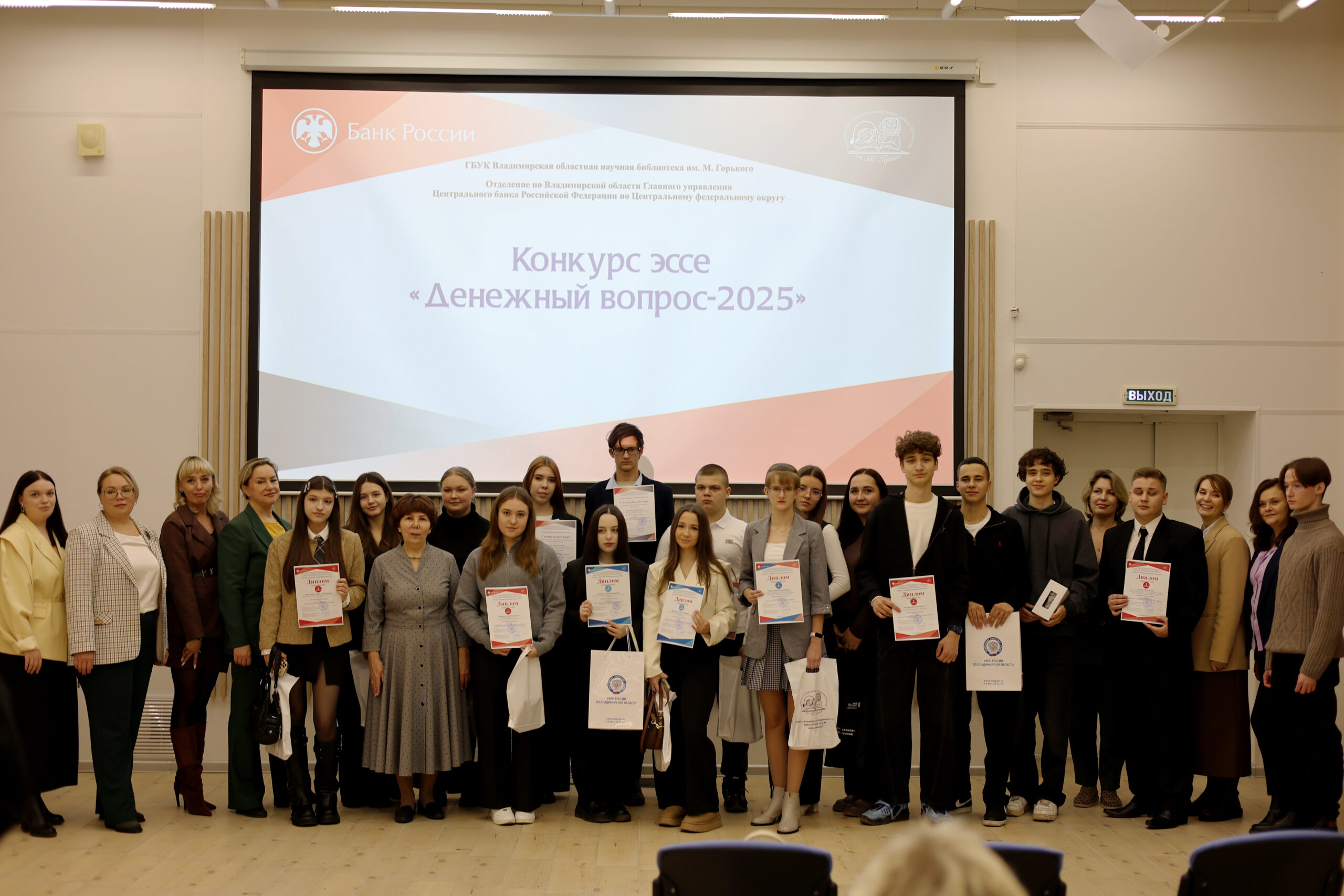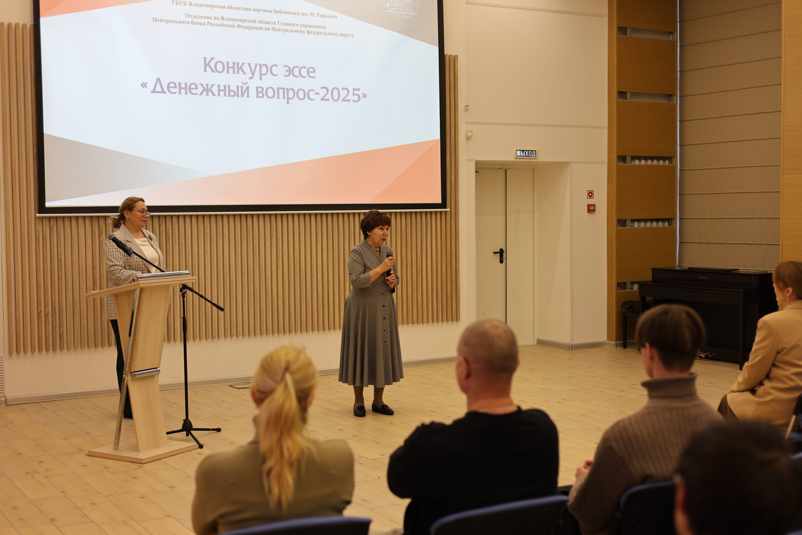 2 декабря 2025 года во Владимирской областной научной библиотеке состоялся финал IV конкурса эссе «Денежный вопрос». В Большом зале собрались победители — учащиеся и педагоги школ и средне-специальных учебных заведений города Владимира и области.