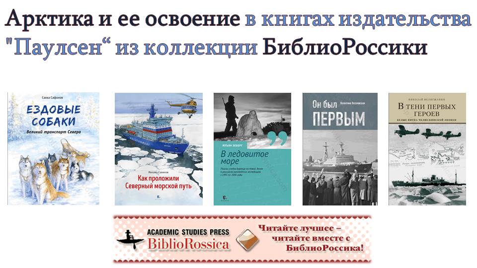 Книг издательства «Паулсен» доступны нашим читателям в электронной библиотеке «БиблиоРоссика«. Мы предлагаем подборку нескольких книг, в которых Арктика раскрывается с различных сторон: как транспортная артерия, зона археологических исследований, научных и технических достижений.