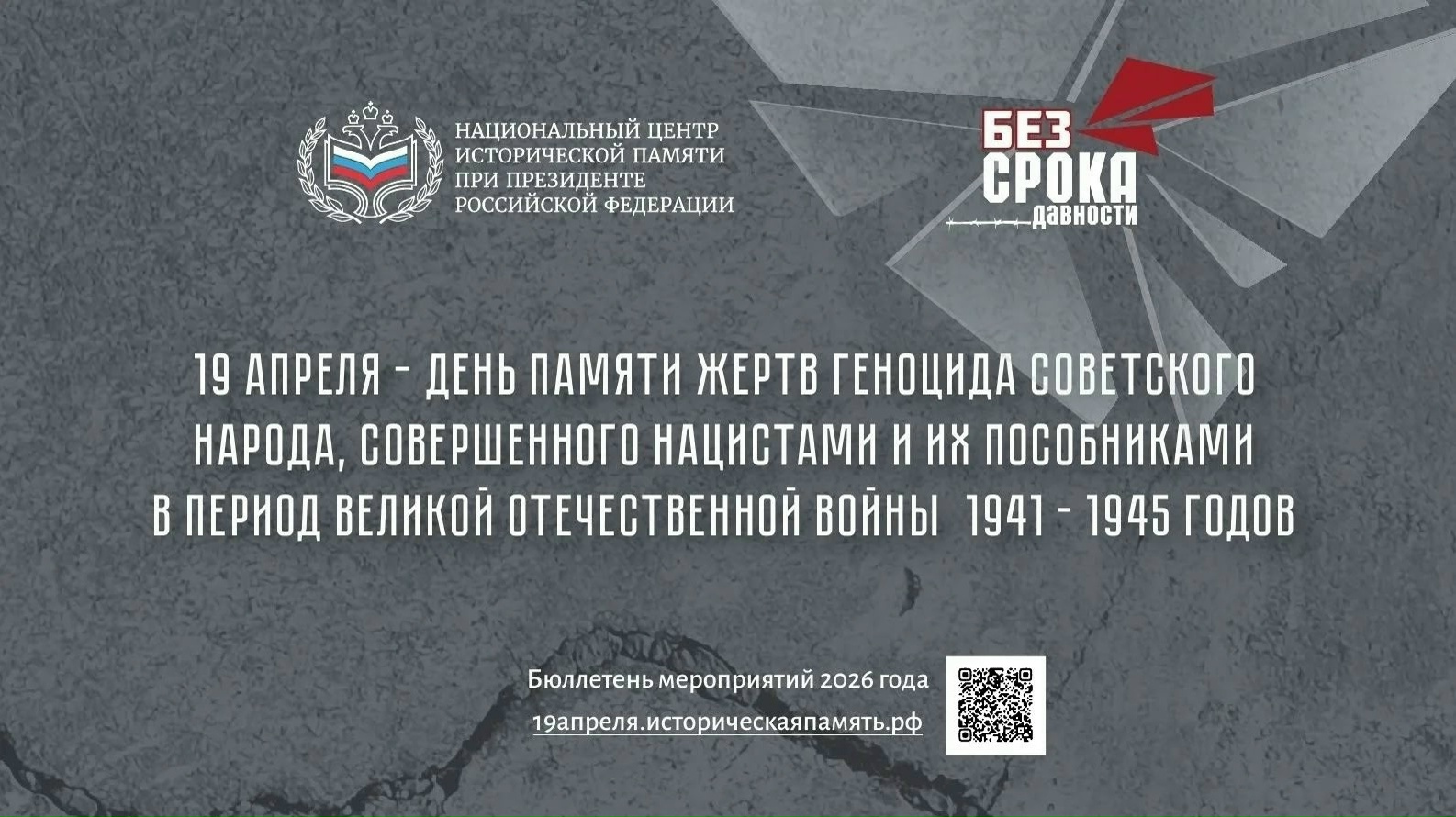 19 апреля является Днем памяти жертв геноцида советского народа, совершённого нацистами и их пособниками в годы Великой Отечественной войны. В этот день проходят памятные акции, объединяющие людей в стремлении сохранить правду о трагедии и почтить память миллионов погибших.