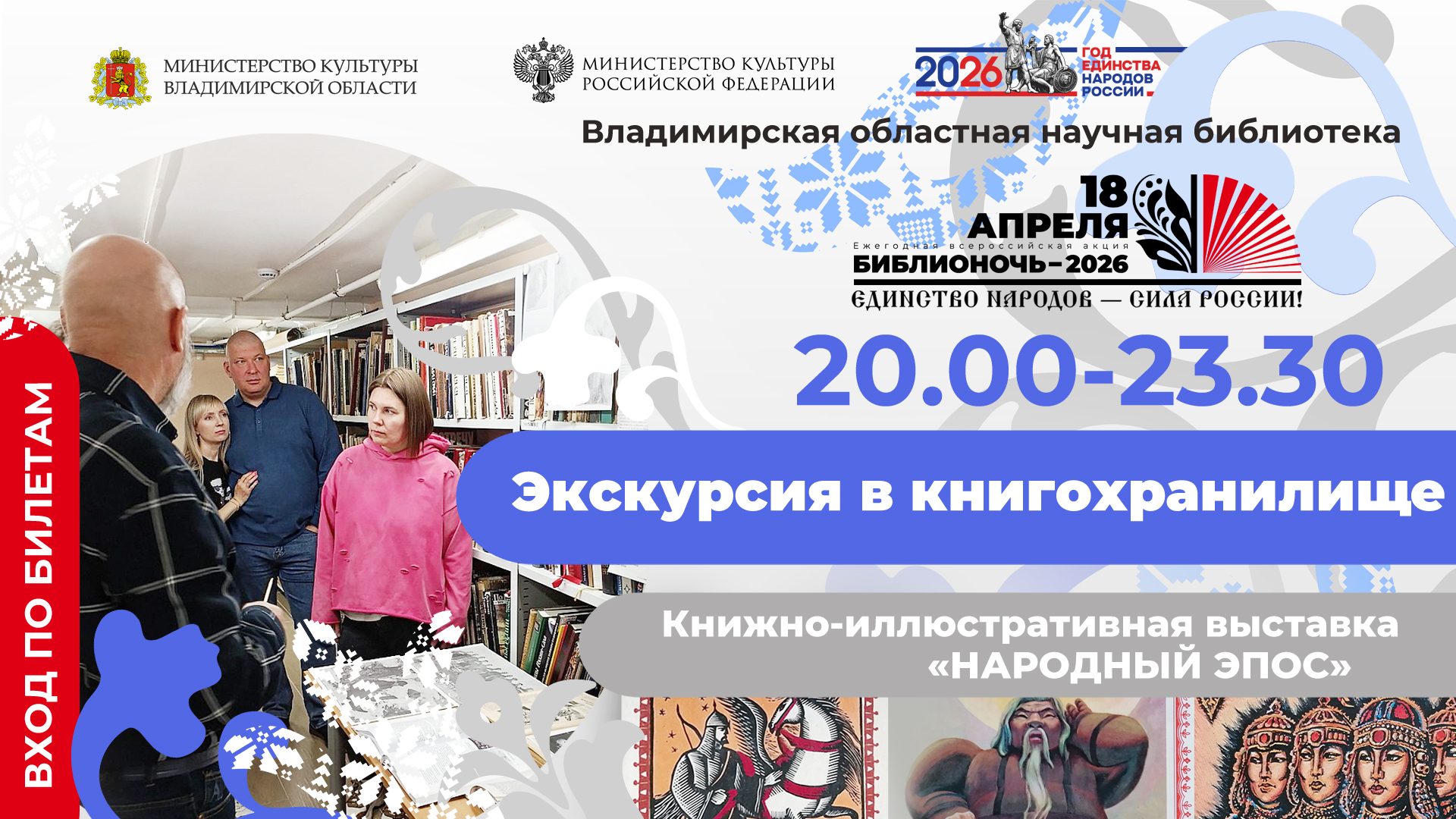 Во время экскурсии по книгохранилищу вниманию посетителей будет представлена выставка «Народный эпос».