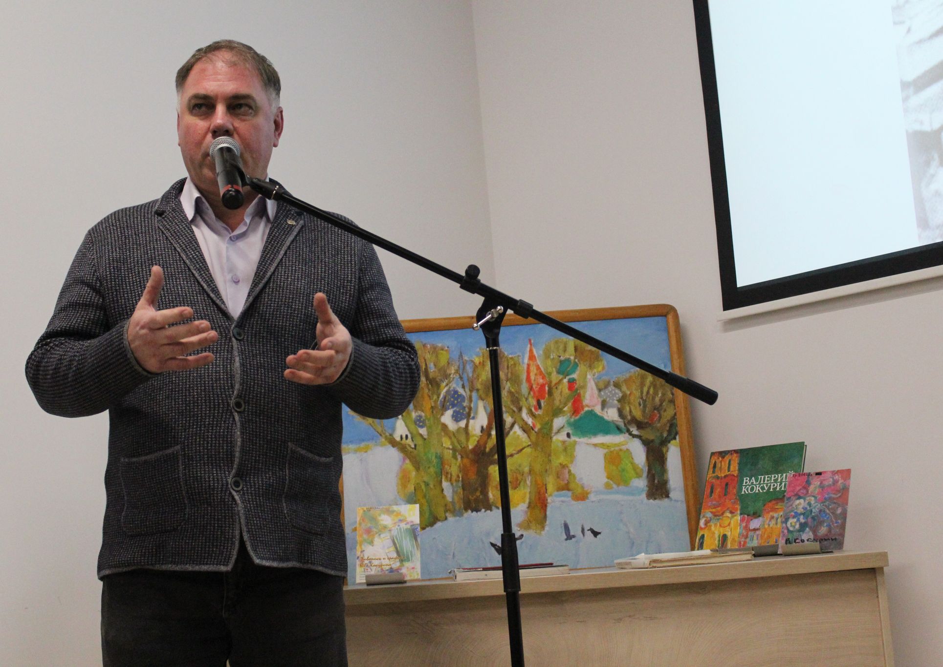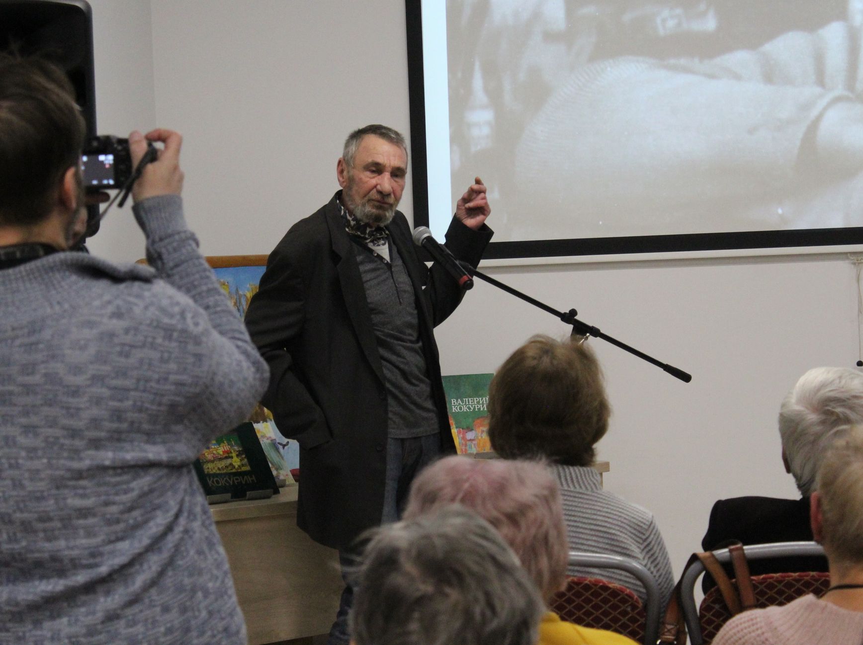 У Валерия Григорьевича не было специального художественного образования. Его университетом стала художественная студия при Доме народного творчества, которой руководил профессор Сычев Николай Петрович. Несколько месяцев учебы у Сычева фактически определили судьбу Кокурина. После армии он смело встал на путь создания собственного стиля, личной художественной системы. О творческом пути художника подробно рассказала искусствовед, член Союза художников России, Почётный член Российской академии художеств, старший научный сотрудник ВСМЗ Надежда Игоревна Севастьянова. Её выступление сопровождалось показом слайдов с работами, наглядно демонстрирующих различные этапы творчества живописца.