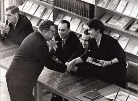 14 февраля 1965 г. Торжественное открытие библиотеки. Директор Е.К. Никитина получает поздравления