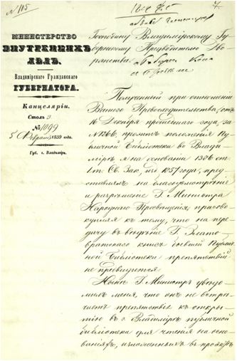 о передаче книг бывшей Владимирской публичной библиотеки в фонд библиотеки Н.П. Златовратского*