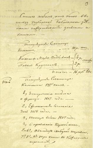 от коих в пользу публичной библиотеки сданы пожертвования деньгами и книгами*