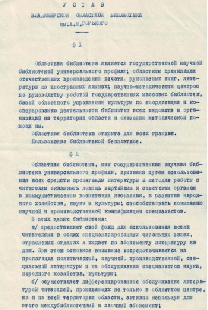 Устав Владимирской Областной Библиотеки им. Горького*