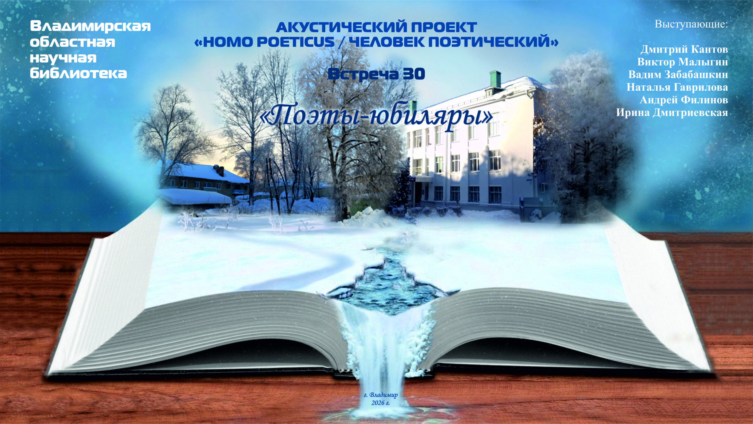 Тридцатая поэтическая гостиная проекта «Homo poeticus/Человек поэтический», посвящённая поэтам-юбилярам наступившего года, состоится 25 февраля 2026 года в 17:30 во Владимирской областной научной библиотеке.