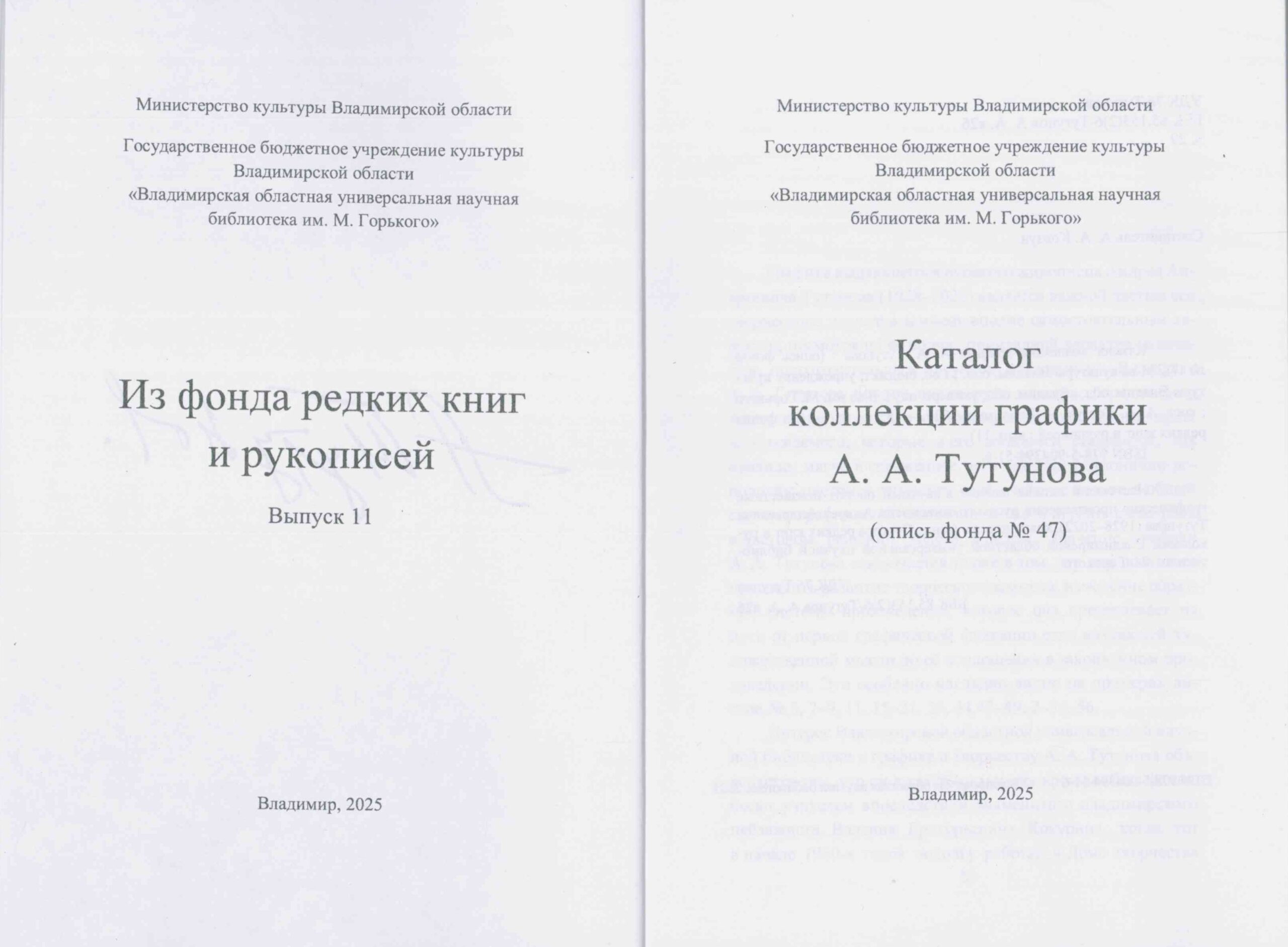 Каталог коллекции графики А. А. Тутунова: (опись фонда № 47). — 2025. — 81 с. — (Из фонда редких книг и рукописей ; вып. 11).