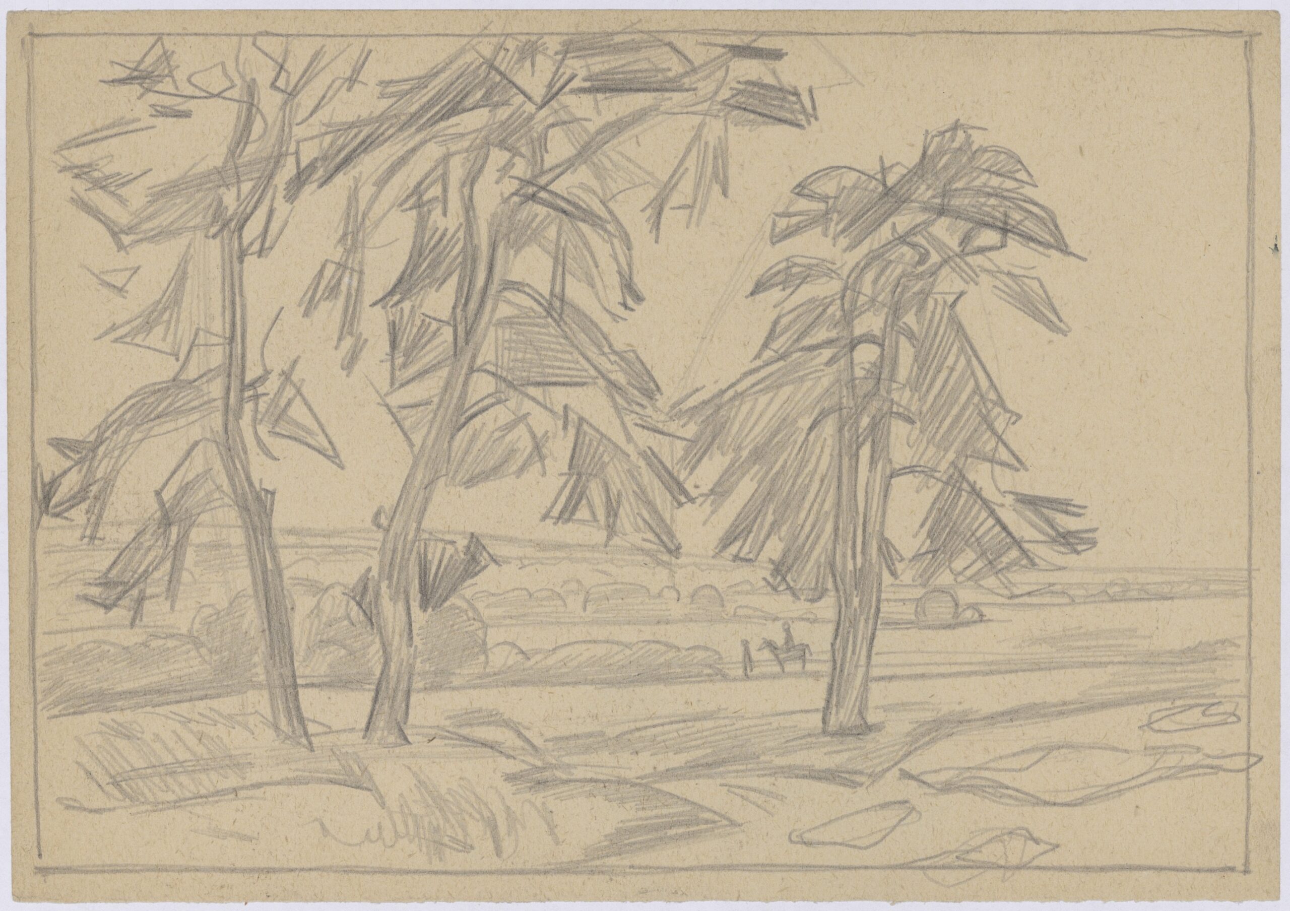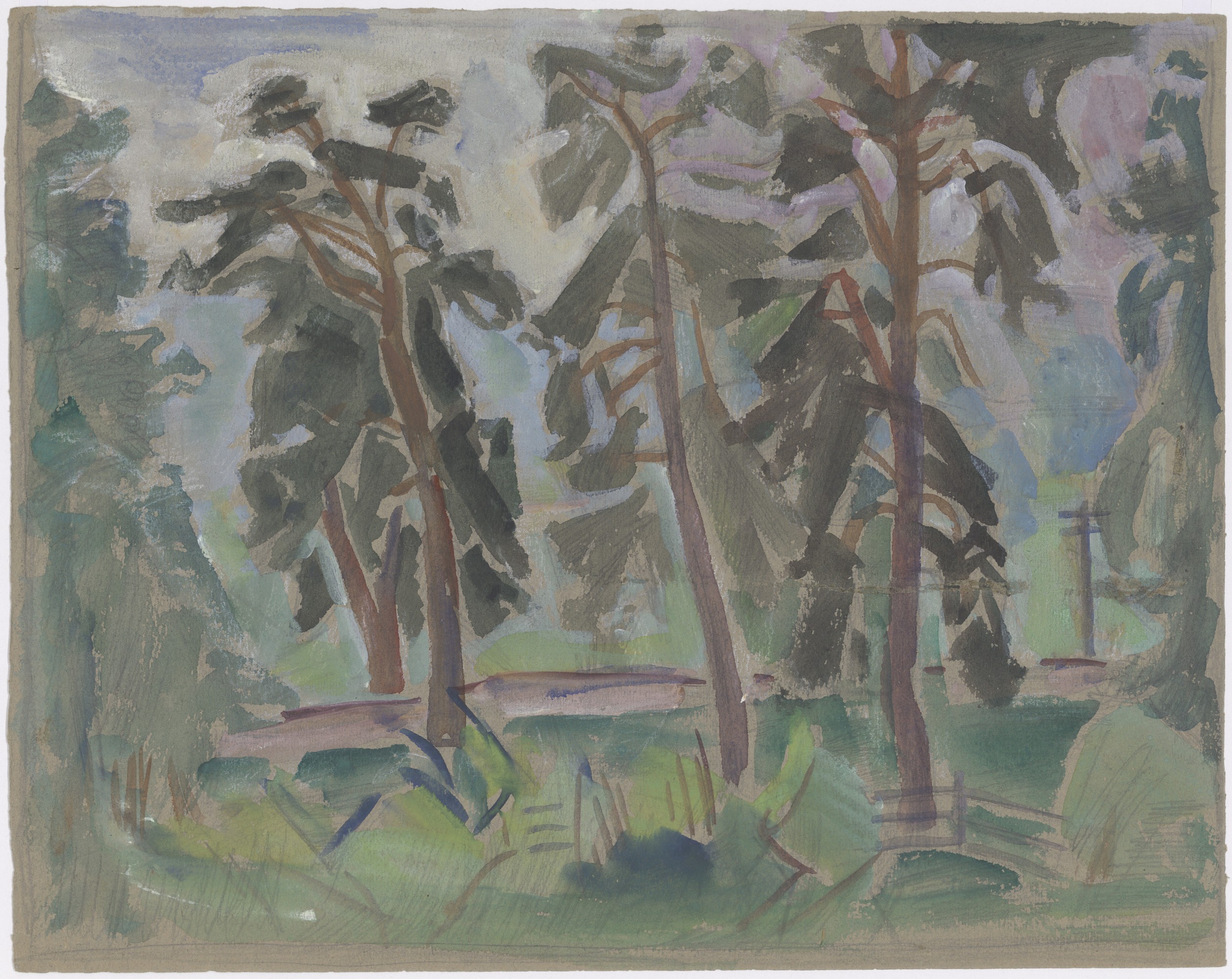 Пейзаж с тремя соснамиАвтор изображения: Тутунов А. А.Источник: Каталог коллекции графики А. А. Тутунова. Владимир : [б.и.], 2025. С. 72