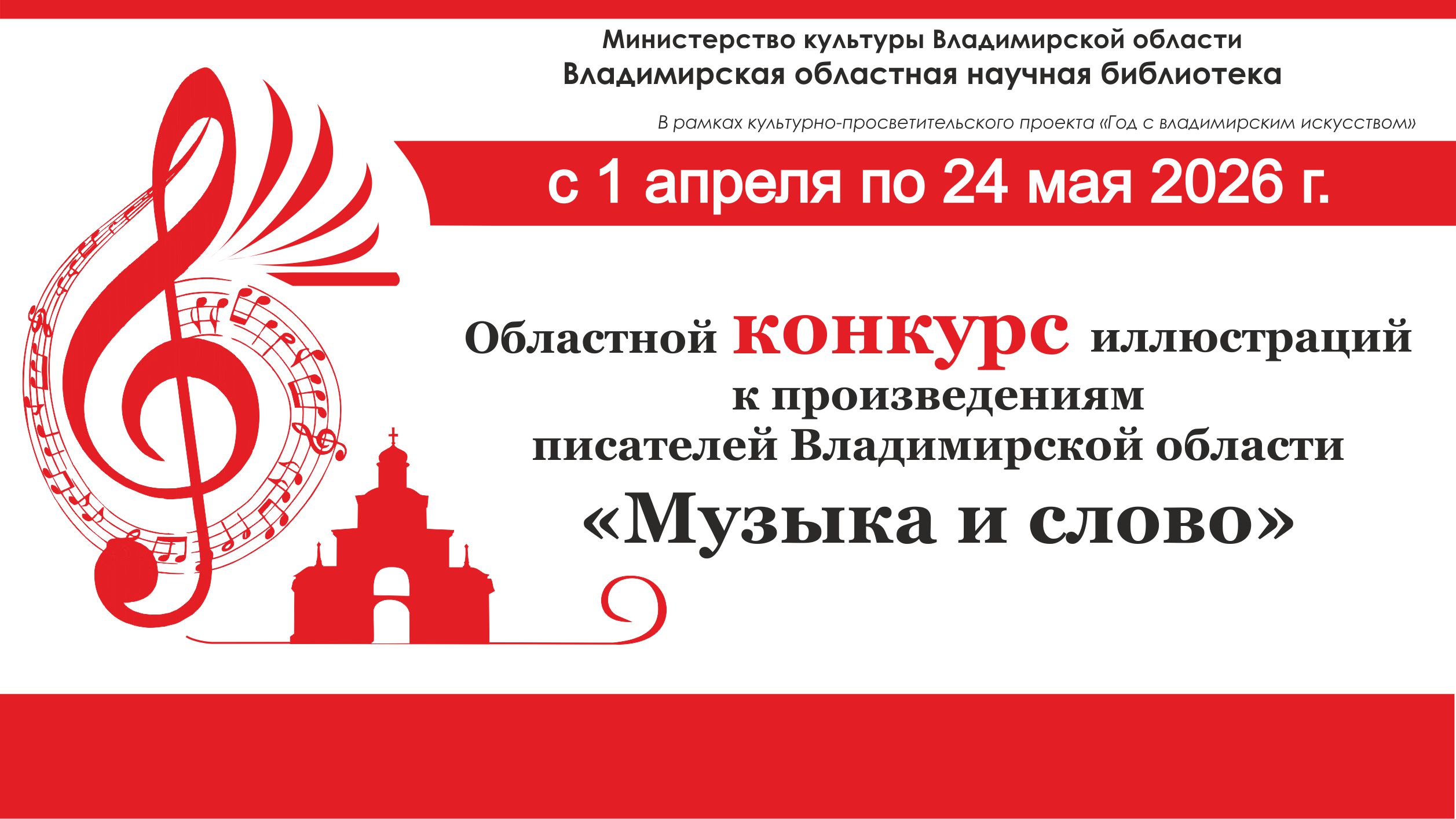 Областной конкурс иллюстраций к произведениям писателей Владимирской области «Музыка и слово» объявлен Владимирской областной научной библиотекой в 2026 году в рамках культурно-просветительского проекта «Год с владимирским искусством».