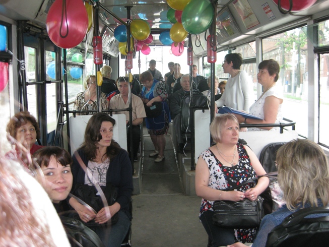 В троллейбусе проводились серьезные и шутливые викторины на знание русской литературы и истории родного края, все участники за правильные ответы получали подарки от библиотекарей: книги стихов и прозы, прилюченческую литературу и фантастику, а также блокноты, ручки, сувениры и подарочные сертификаты от спонсоров ярмарки: издательств, газет, институтов, академий и туристической фирмы.