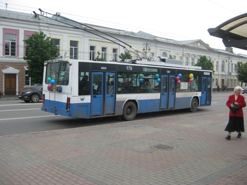 Уже седьмой год подряд параллельно с ярмаркой по маршруту № 8 (внешнее кольцо) курсировал «Литературный троллейбус». Желающие доехать до нужной остановки владимирцы попадали в украшенный воздушными шарами салон, где звучал рассказ об истории улиц Владимира, его занаменитых горожанах, о событиях времен минувших и недавних. Свое литературное и историческое путешествие троллейбус начал традиционно с площади Победы, на которой расположен Мемориал владимирцам, погибшим в годы Великой Отечественной войны. Более 24 тысяч владимирцев ушли на фронт, 11 тысяч — не вернулись назад. Их памяти посвящен этот мемориал, первая очередь его была открыта в 1975 г. Вечный огонь доставлен из Москвы от Могилы неизвестного солдата. В честь 65-летия обеды в Великой Отечественной войне композицию мемориала дополнили 24 барельефа владимирцев – Героев Советского Союза. Барельефы отливали из бронзы смоленские мастера, а автором архитектурного проекта является владимирский скульптор Игорь Черноглазов, заслуженный художник России. Рассказы о подвигах Пичугина и Гастелло, факты из жизни диктора всесоюзного радио Левитана, перечисление зданий, исполнявших в годы войны функции госпиталей, стихи о войне и ветеранах – все это звучало с огромной благодарностью к подвигу русского народа в Великой Отечественной войне и гордостью за своих земляков, принесших победу нашей стране.