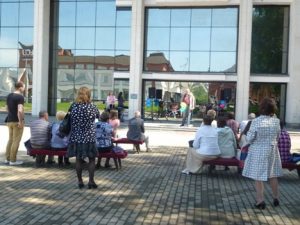 Для творческих людей библиотека подготовила импровизированную литературную гостиную. Справа от драмтеатра, в березовом сквере, работает открытый микрофон для тех, кто пишет стихи и прозу, сочиняет музыку и хочет поделиться своим творчеством с другими. Каждый автор, неважно, профессионал или любитель, сможет выступить перед ценителями прекрасного.