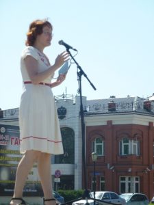Стихи современной талантливой поэтессы Ксении Букши, завоевавшей современную аудиторию сначала с помощью интернета, и только затем – бумажных изданий, прочел с главной сцены актер Владимирского академического областного драматического театра Александр Аладышев. Его коллега Анна Лузгина очень эмоционально и прочувствованно прочла лирику Владимира Маяковского.