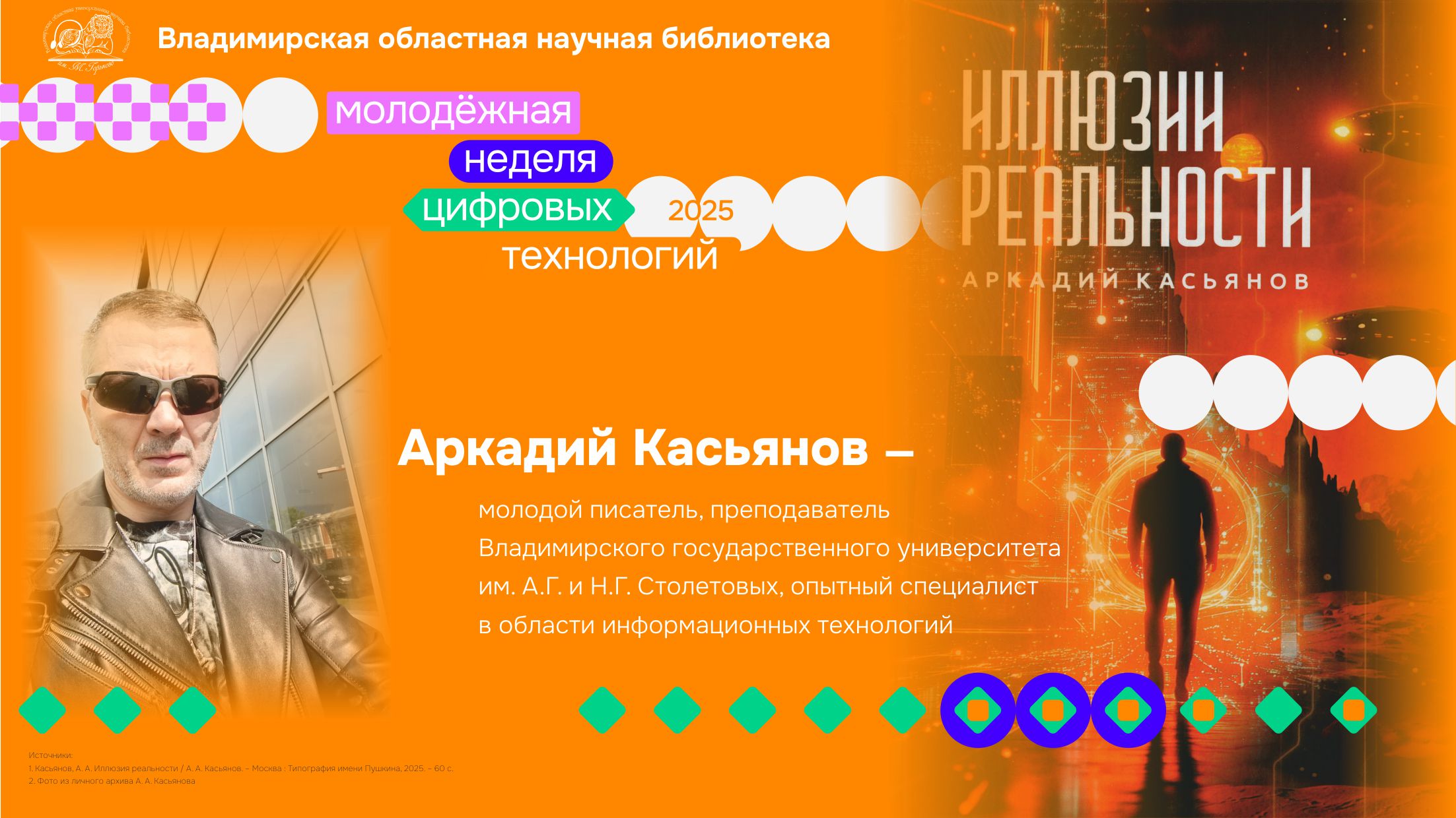 29 ноября 2025 г. в 17:00 приглашаем на презентацию книги Аркадия Касьянова «Иллюзии реальности». Мероприятие проходит в рамках Всероссийской акции Молодёжная неделя цифровых технологий — 2025.