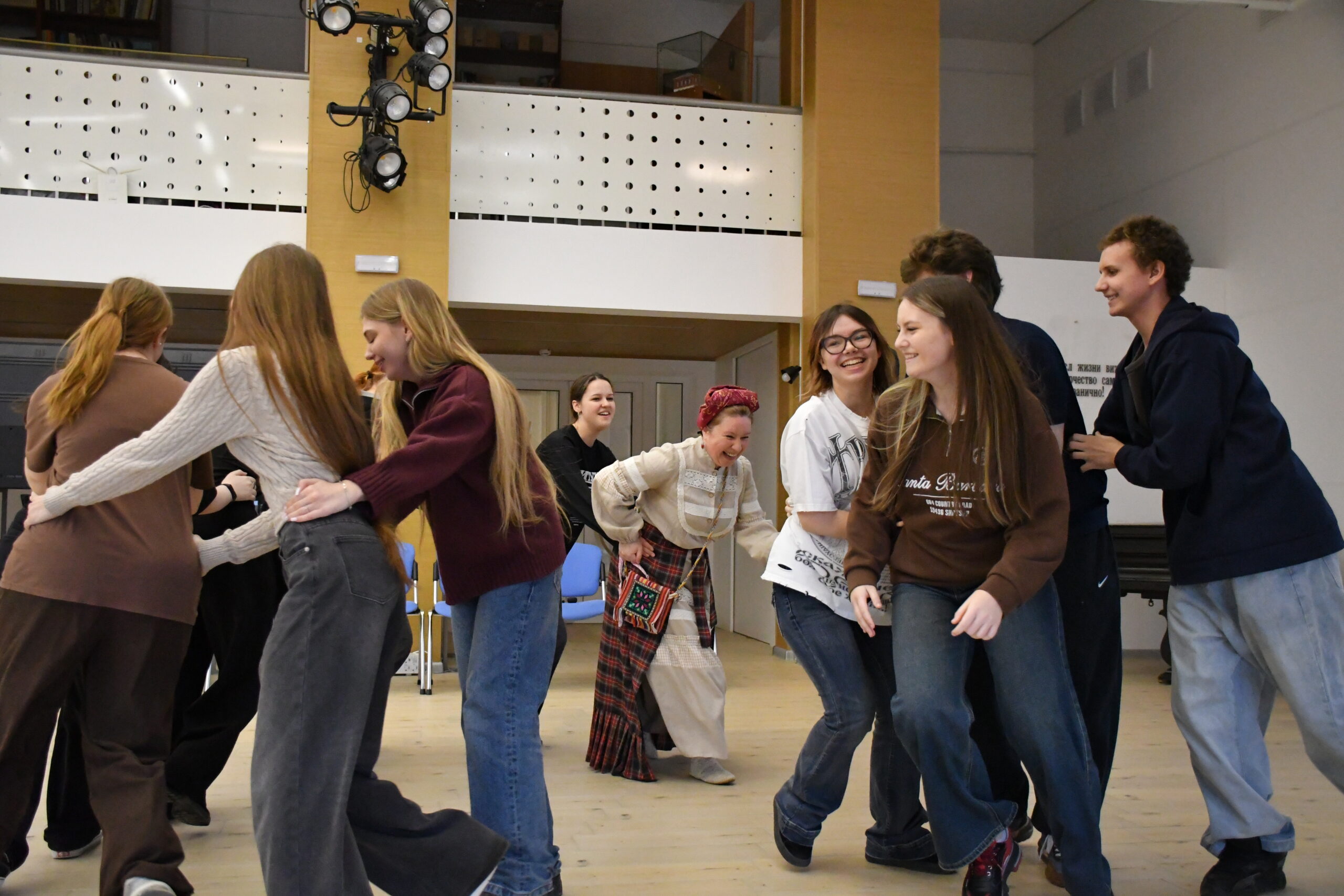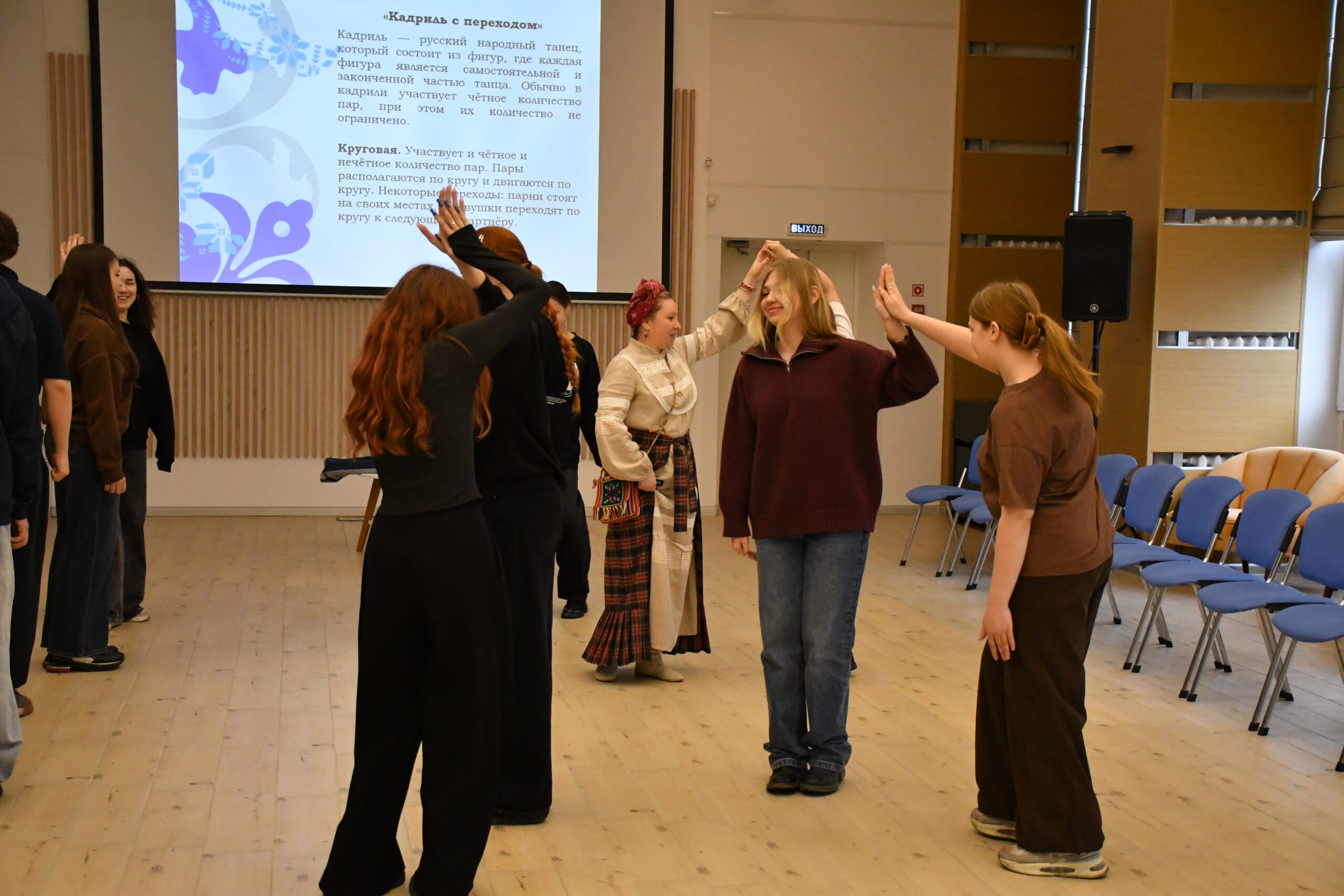Вместе мы перенеслись в прошлое, узнали о традициях молодёжных вечёрок, а потом устроили настоящую потеху в старых традициях. Русские народные игры — отличный способ показать молодецкую удаль. Ребята станцевали «Кадриль с переходом», познакомились с играми «Пастухи», «Колечко», «Хвосты», «Расческа». Мы вспоминали, как отдыхала молодёжь во времена наших дедушек и бабушек.