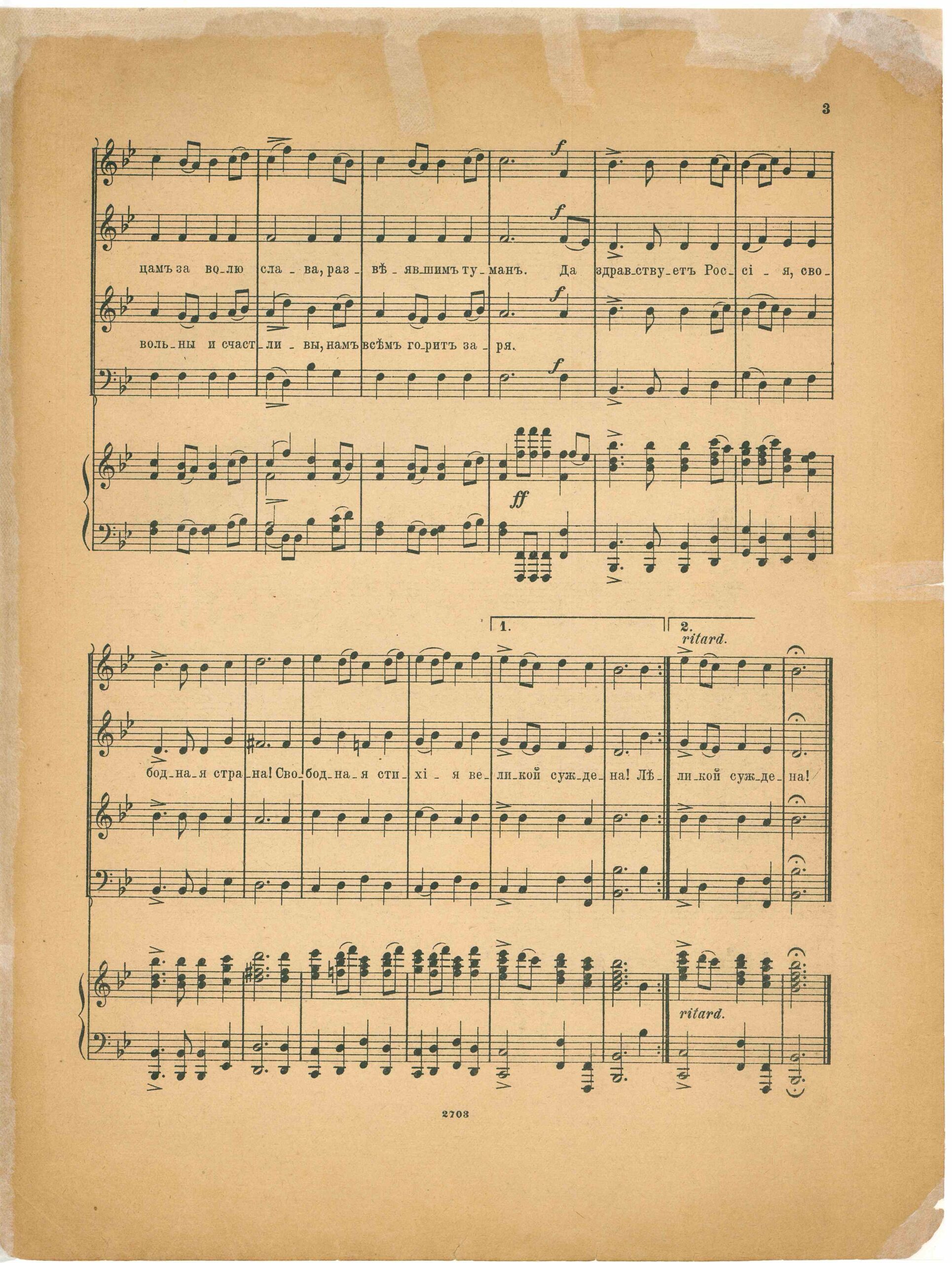 Источник: Гречанинов, А. Т. Гимн свободной России [Ноты]. М. : Российское музыкальное изд-во, [1917]. С. 3