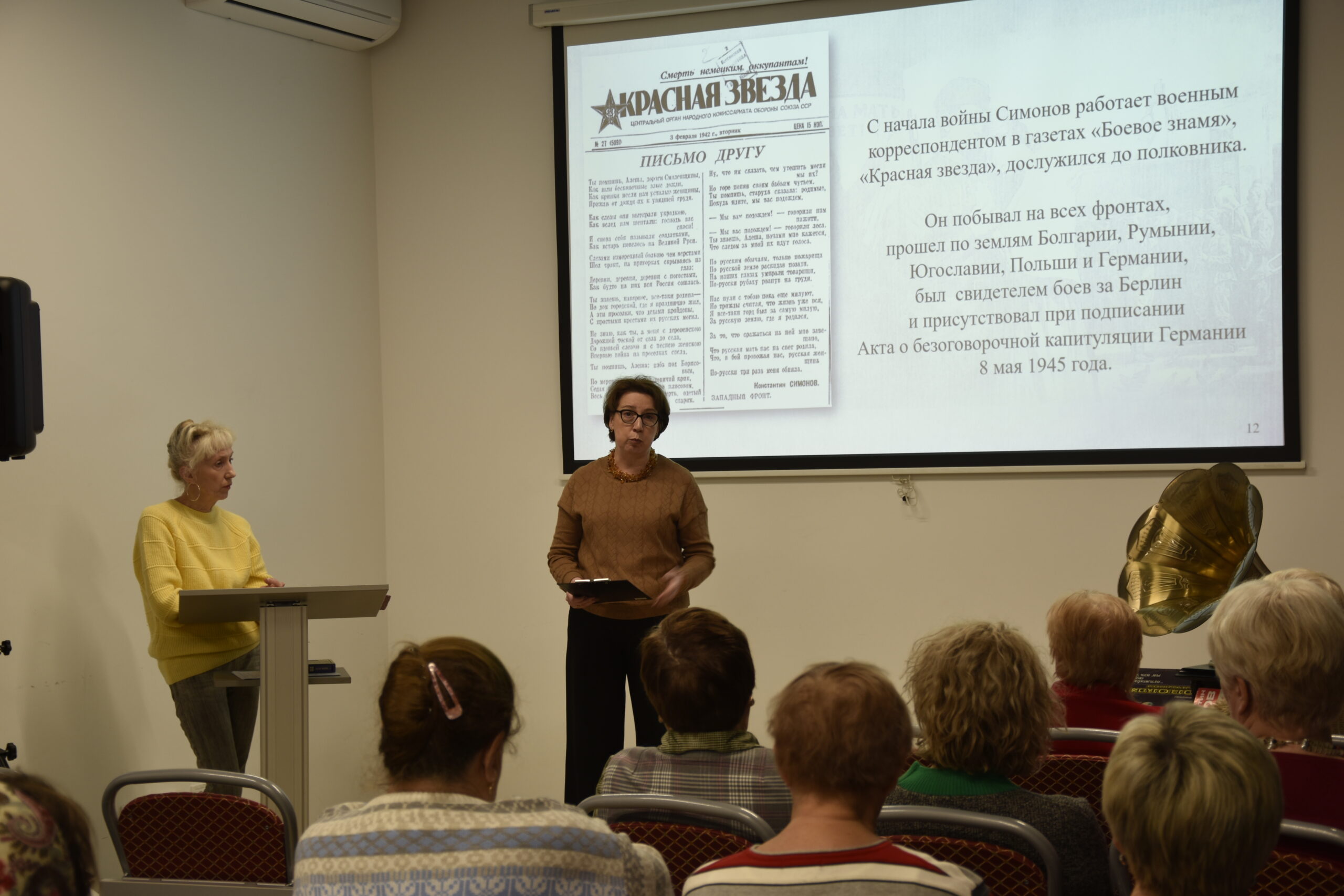 Вечер был посвящен известному советскому писателю, поэту-фронтовику, военному корреспонденту и общественному деятелю. Симонову в этом году исполняется 110 лет со дня рождения.