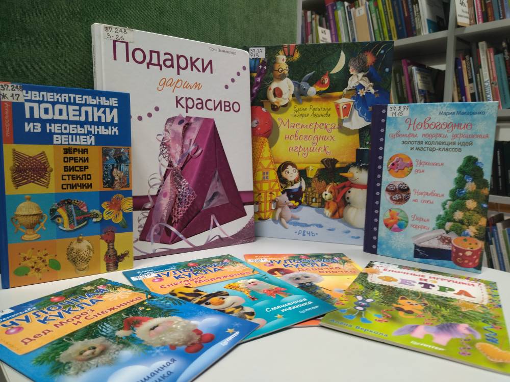 Книжная выставка «Мастерская подарков», которая организована в отделе производственной литературы, подскажет множество интересных идей для изготовления своими руками по-настоящему уникальных новогодних и рождественских даров.