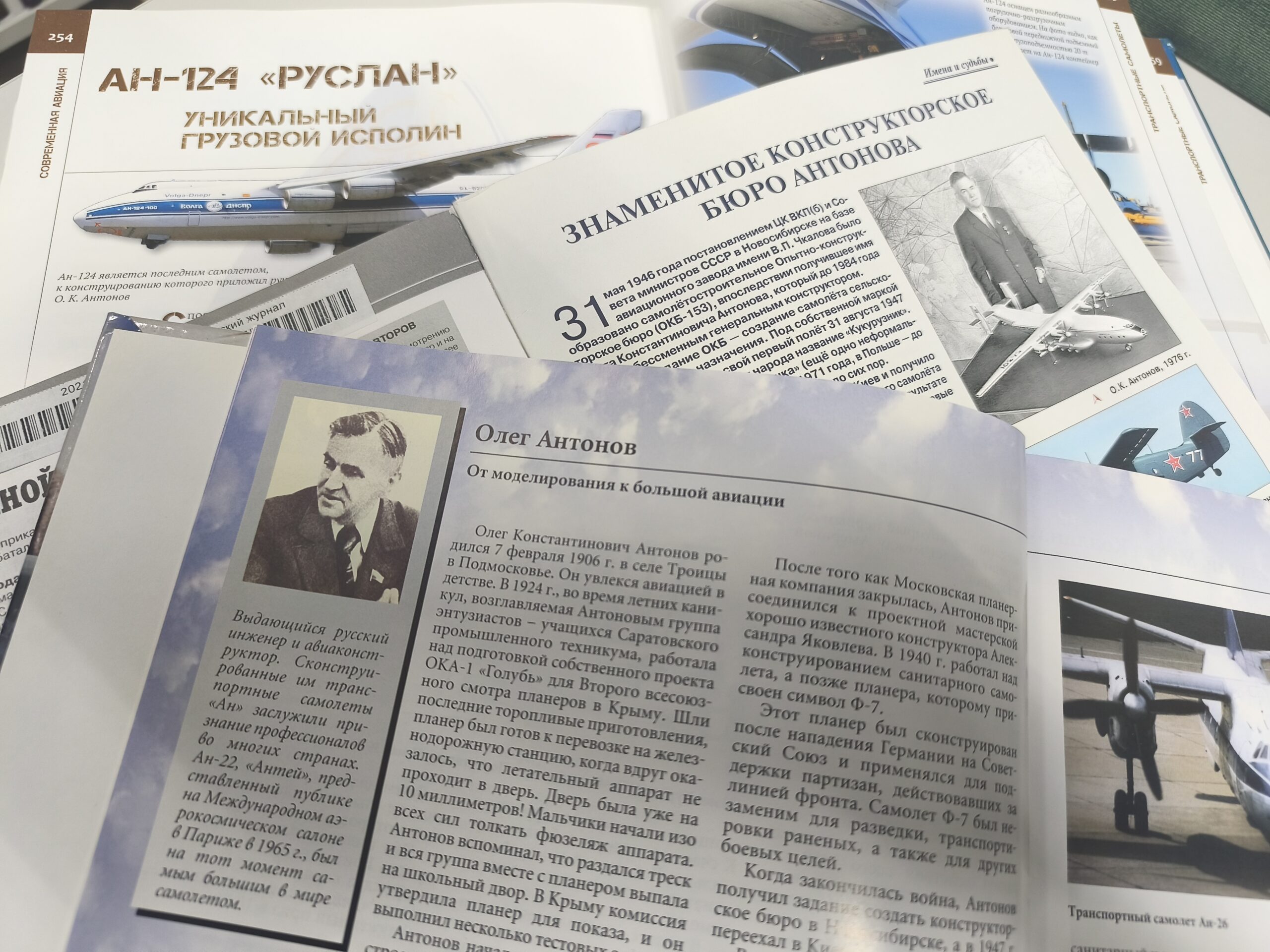«Руслан» стал последним самолетом, созданным под непосредственным руководством известного авиаконструктора О. К. Антонова. За 60 лет непрерывного творческого труда Олег Константинович издал 200 научных трудов и 4 книги, так или иначе, касающихся отечественной авиации; запатентовал 72 авторских свидетельства на технические изобретения.