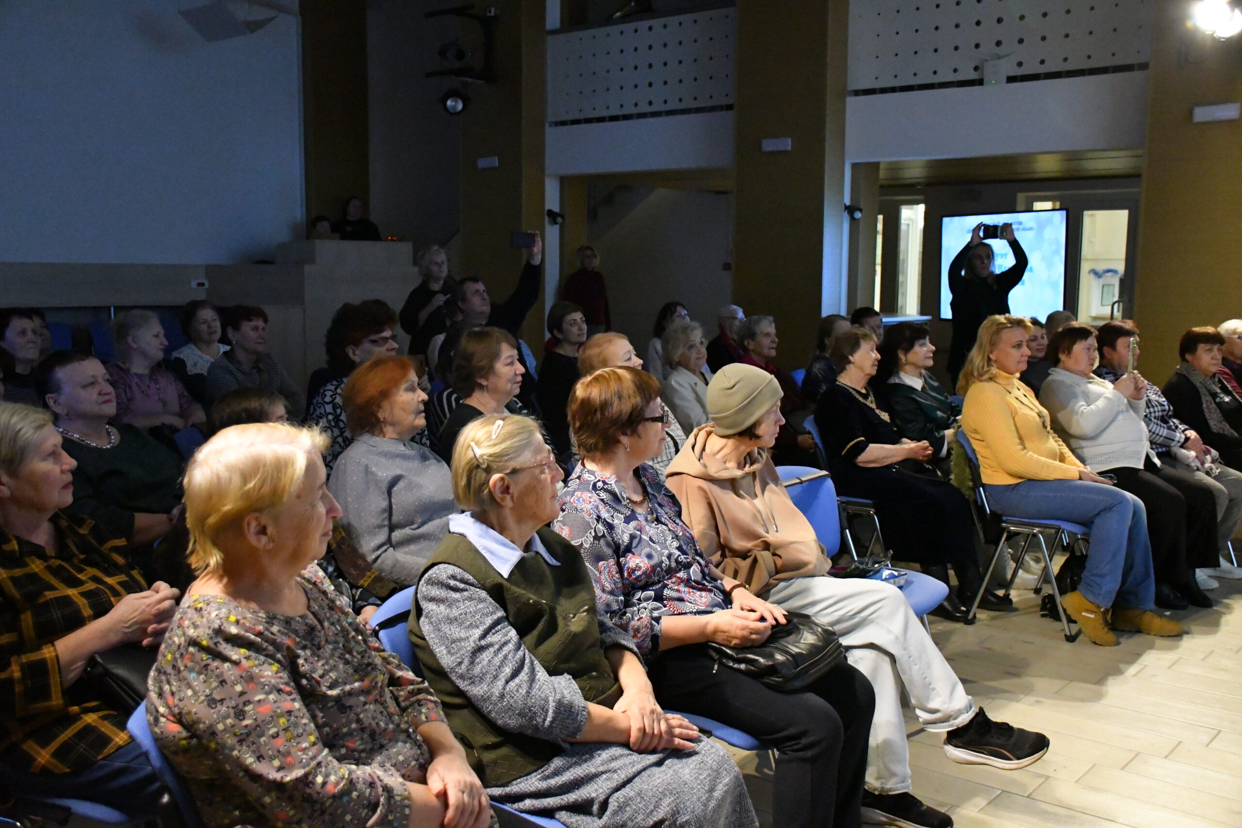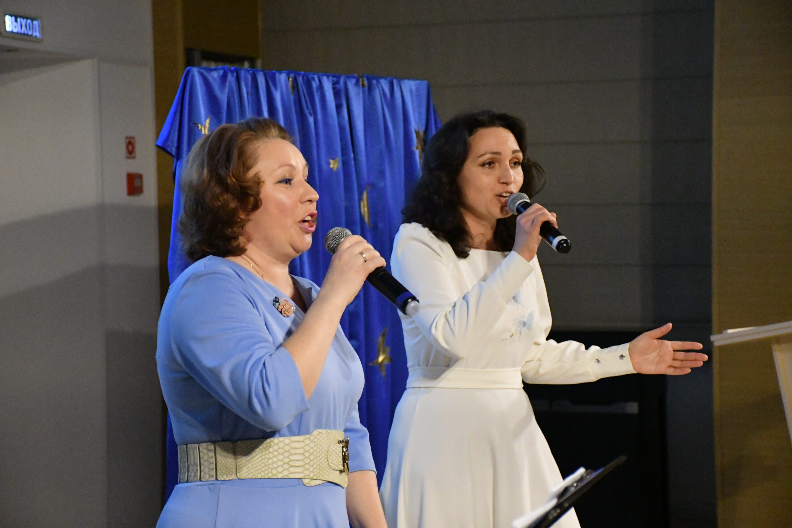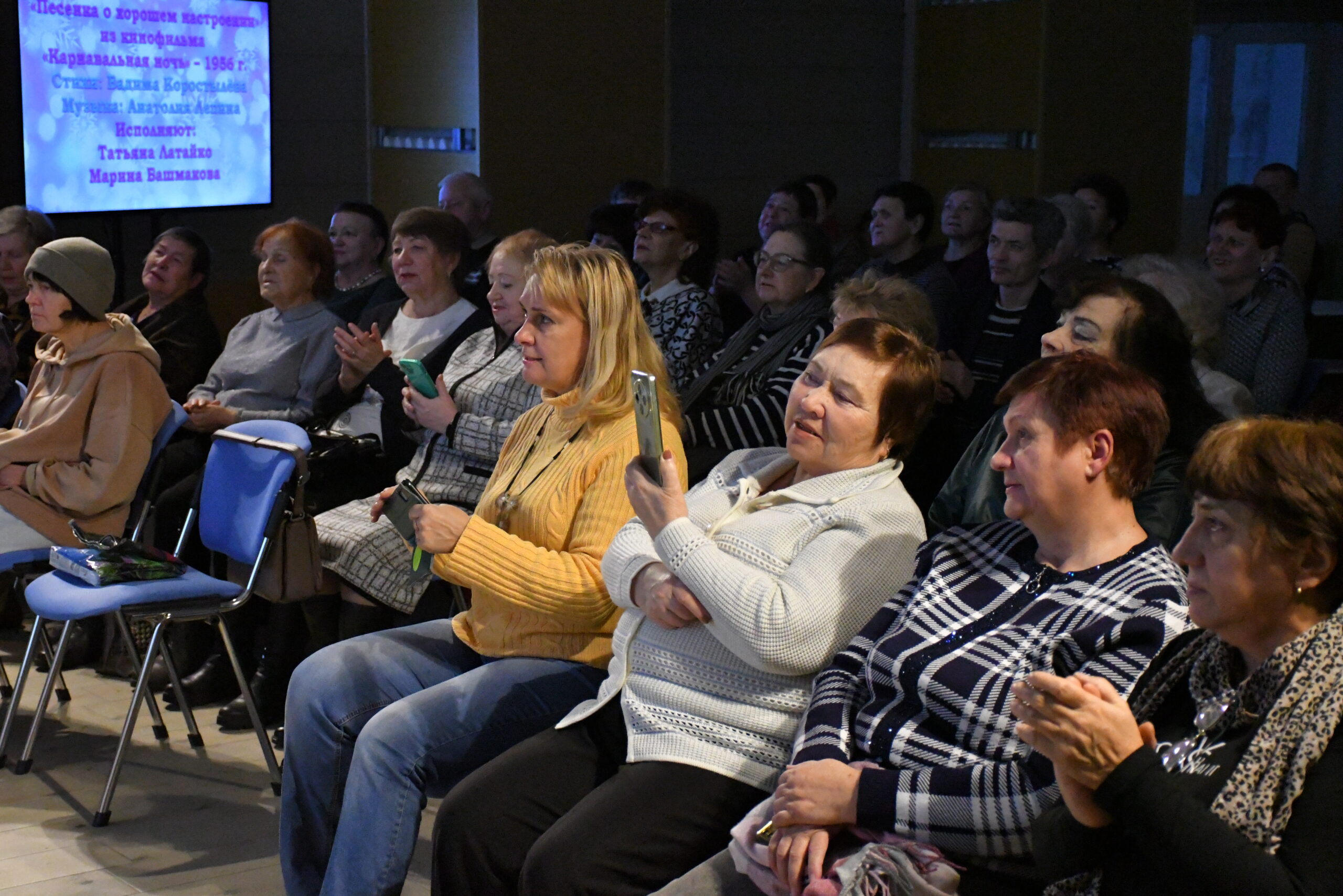 Открыли вечер Татьяна Латайко и Марина Башмакова. Они исполнили полюбившуюся «Песенку о хорошем настроении» из кинофильма «Карнавальная ночь» (1956 г.), стихи: Вадима Коростылёва, музыка: Анатолия Лепина. Её исполнили.
