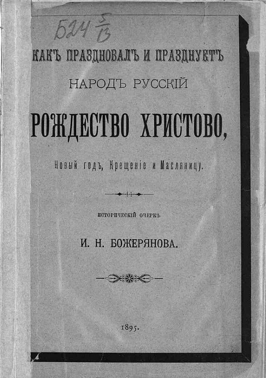 В книге Ивана Божерянова «Как праздновал и празднует народ русский Рождество Христово, Новый год, Крещение и масленицу» (1895), электронная копия которой размещена на портале Президентской библиотеки, рассказывается, что празднование Святок пришло из Древней Греции. Иван Божерянов пишет: «сохранились сведения, что установление праздника Рождества Христова („солнца правды») на 25 декабря было сделано христианской церковью для того, чтобы противопоставить великий христианский праздник языческому празднованию „дня солнца непобедимого»».