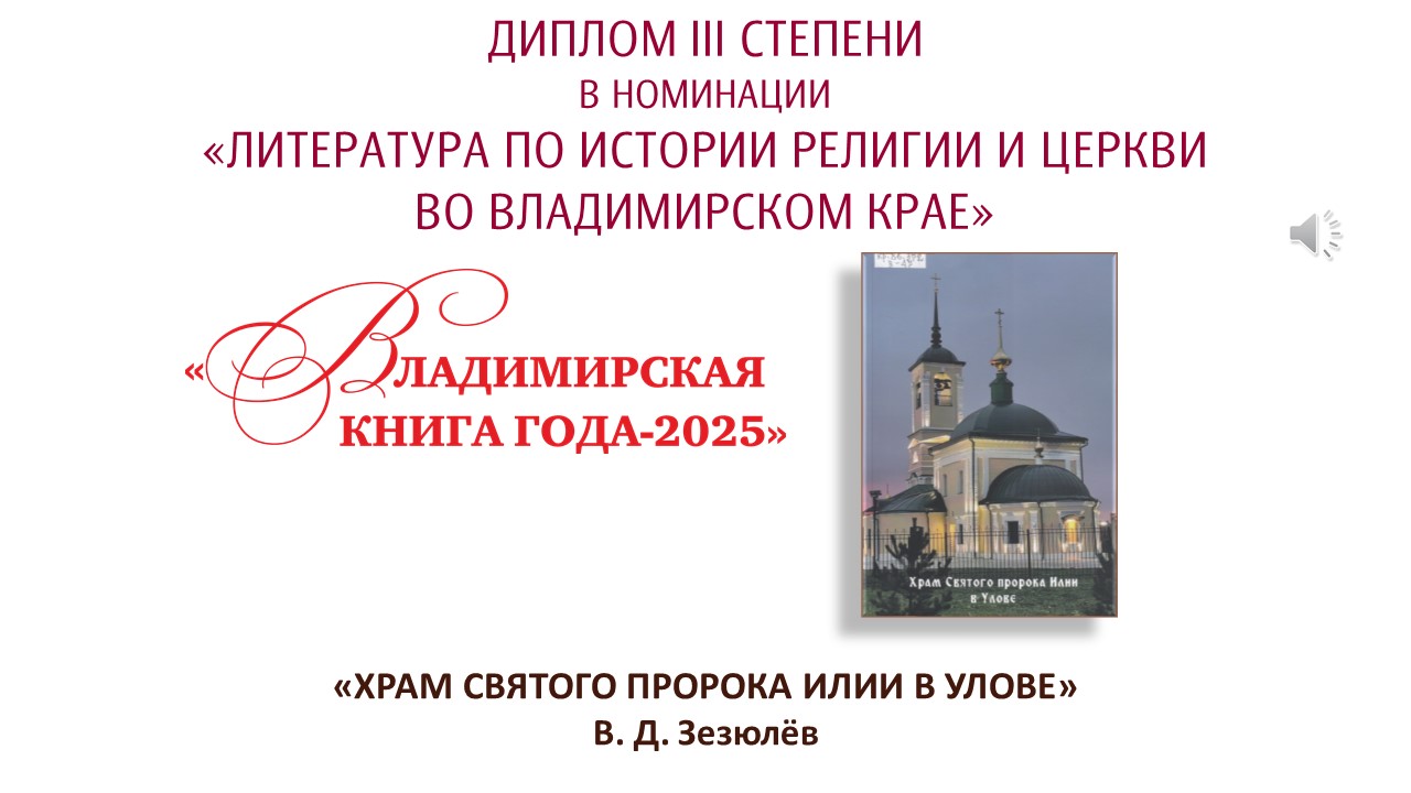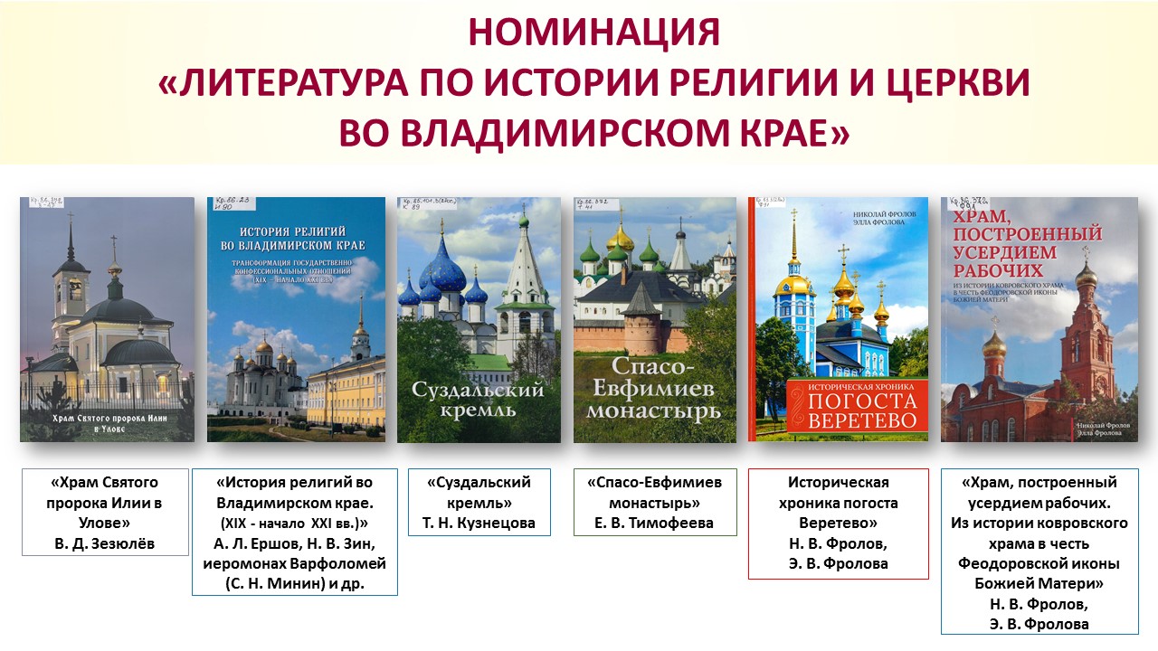 Номинацию «ЛИТЕРАТУРА ПО ИСТОРИИ РЕЛИГИИ И ЦЕРКВИ ВО ВЛАДИМИРСКОМ КРАЕ»