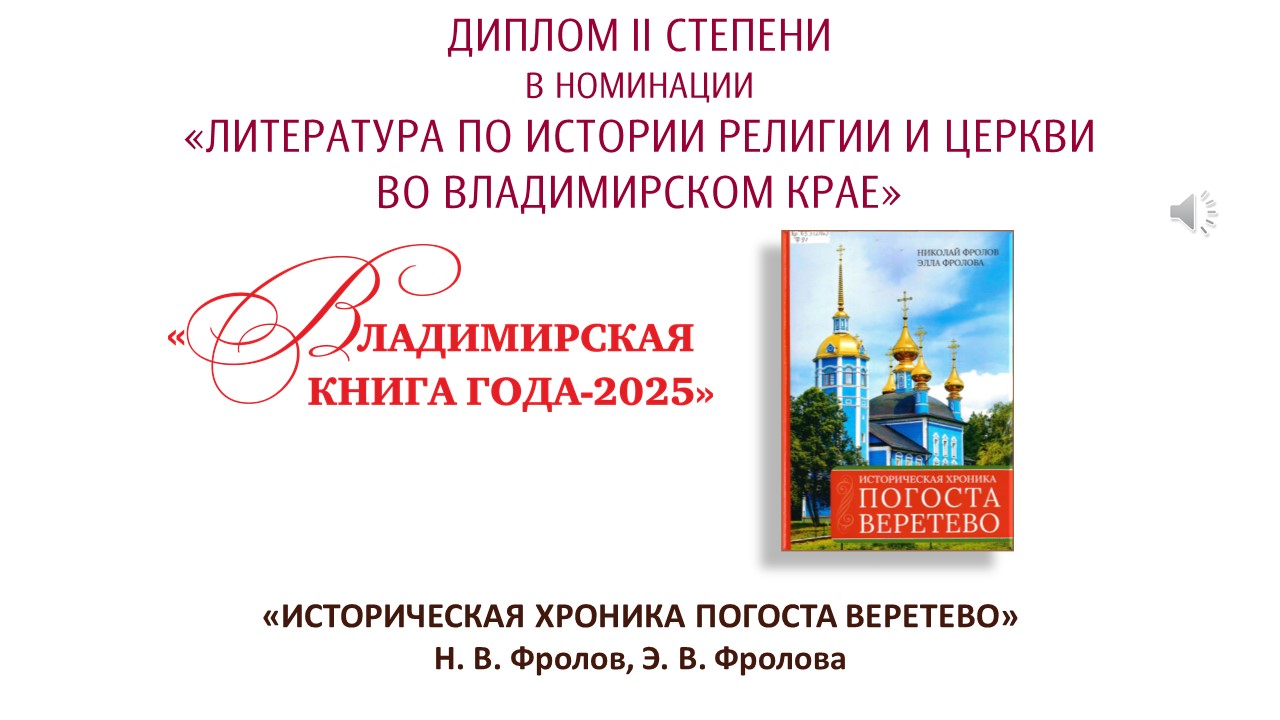 Дипломом победителя 2 степени награждена книга «Историческая хроника погоста Веретево», авторы Николай Владимирович и Элла Владимировна Фроловы.