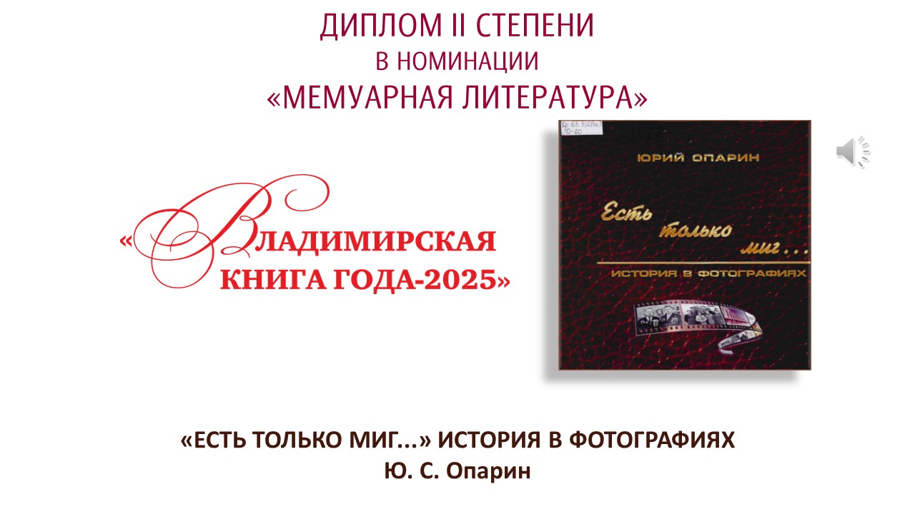 Дипломом 2 степени отмечена книга «Есть только миг…: история в фотографиях», автор Юрий Степанович Опарин.