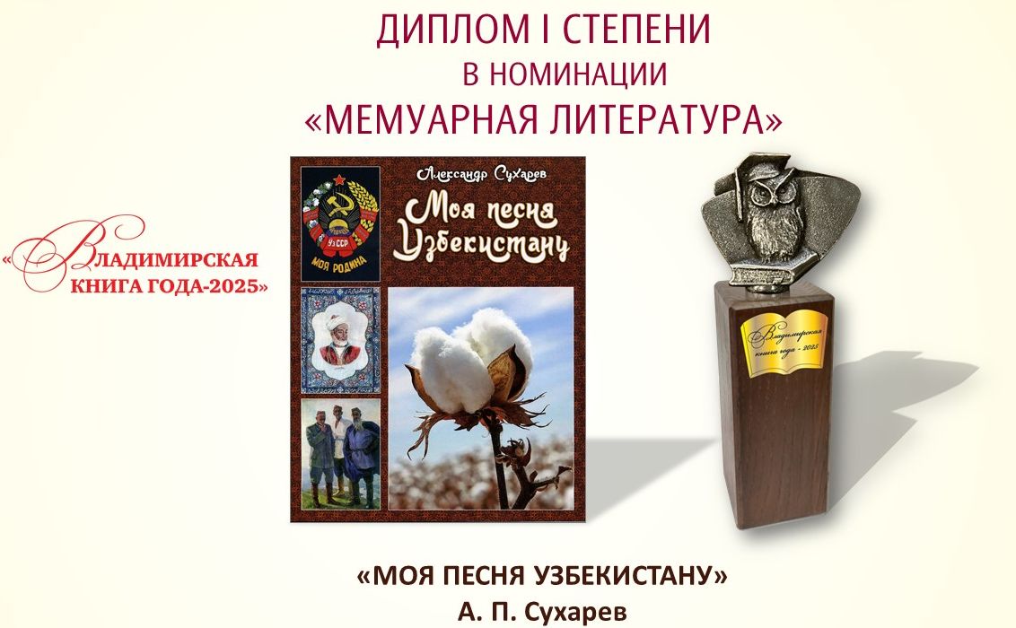 Диплом 1 степени и бронзовую сову получило издание «Моя песня Узбекистану», автор Александр Петрович Сухарев, обладатель званий «Заслуженный юрист России» и «Почётный работник прокуратуры России».