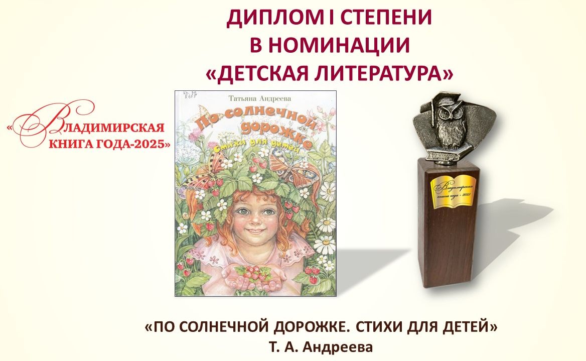 Дипломы 1 степени и памятные знаки вручены книгам: «По солнечной дорожке», автор Татьяна Александровна Андреева …