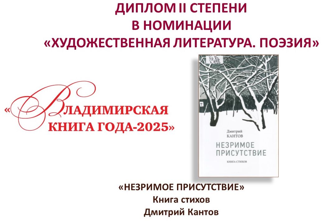 Дипломом 2 степени награждена книга «Незримое присутствие», автор Дмитрий Владимирович Кантов.
