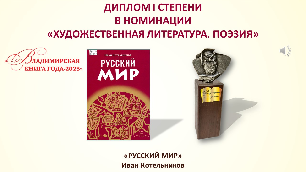 Дипломом 1 степени и памятным знаком награждены книги: «Русский мир», автор Иван Котельников (Олег Юрьевич Лобачёв)…
