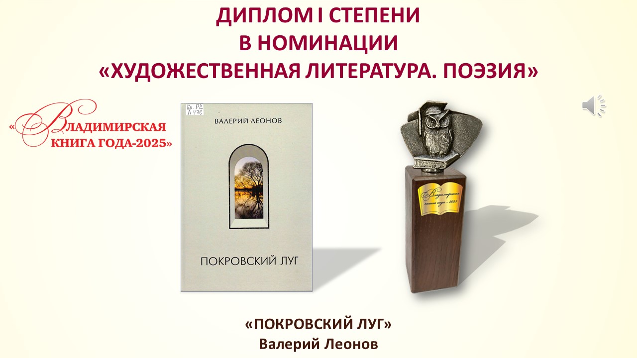 Дорогие наши победители и номинанты XI Областного конкурса! Поздравляем еще раз вас с заслуженными наградами! Мы поздравляем всех авторов, приславших свои книги на конкурс Владимирская книга года-2025 — теперь они навсегда вписаны в литературную историю нашего края и навсегда заняли свои места на библиотечных полках! Мы поздравляем читателей, получивших в подарок десятки новых произведений наших земляков! Желаем всем здоровья, новых исследовательских открытий и творческого вдохновения! И ждём новых участников нового ежегодного конкурса «Владимирская книга года»!