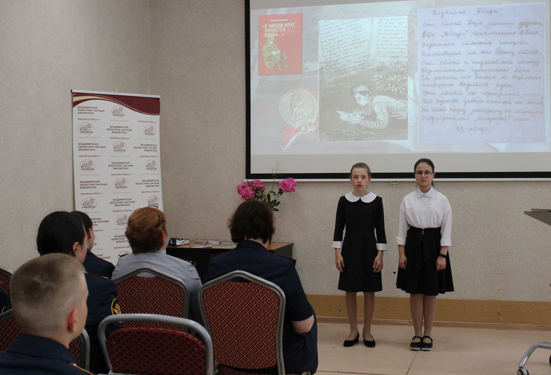 Выступают Мария Липина и Софья ВаськовскаяСтихотворения Николая Лукьянова «Подбитые тигры», «Последняя ночь в блиндаже»