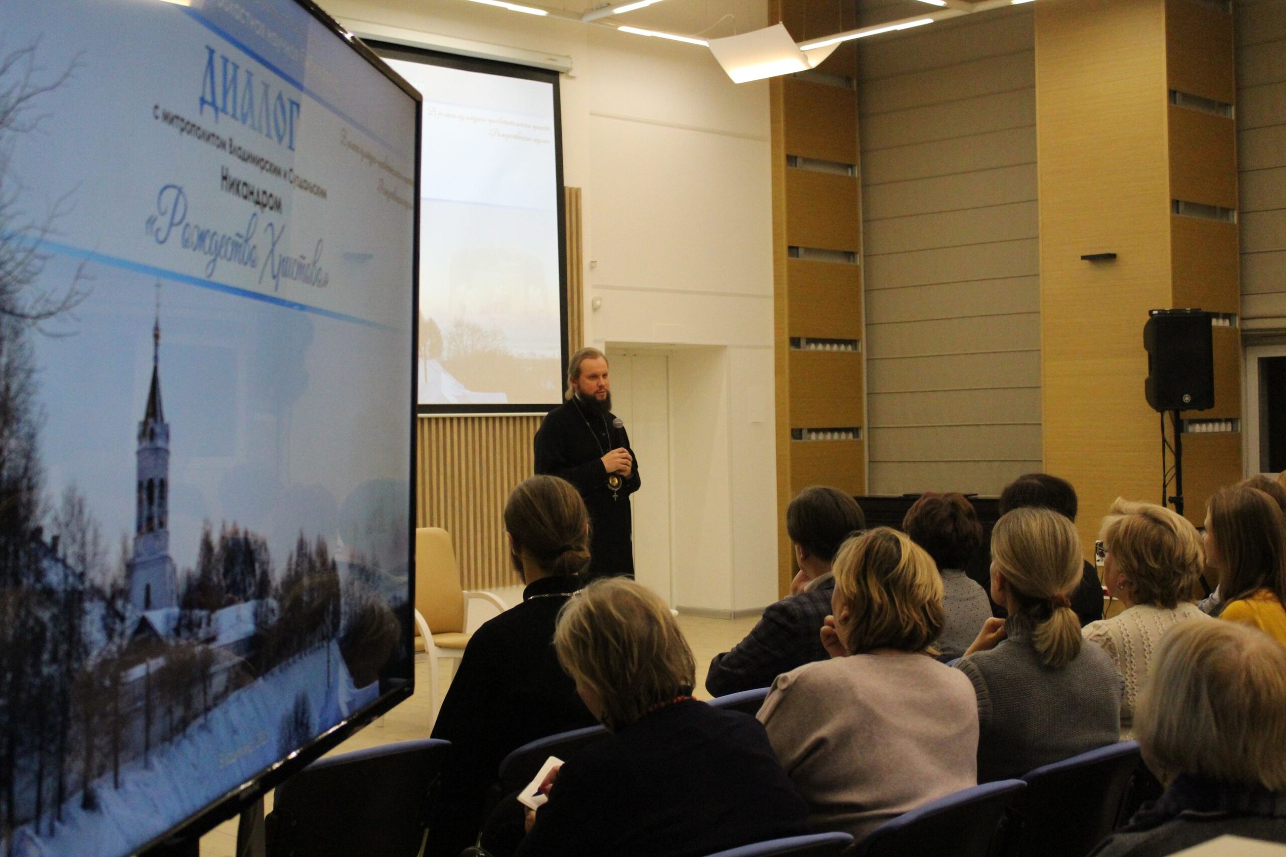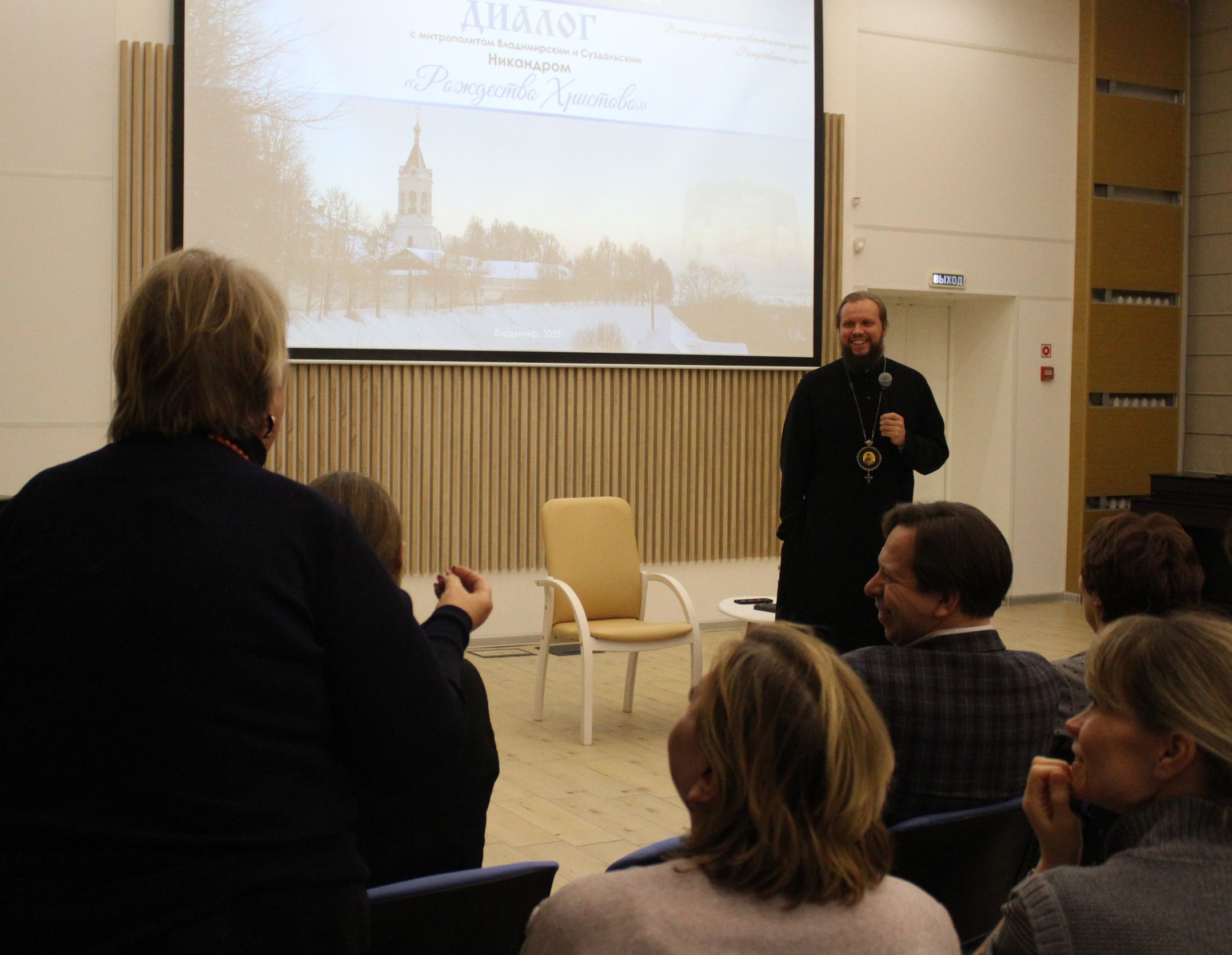 2 декабря 2025 г. прошла встреча с митрополитом Владимирским и Суздальским Никандром в нашей библиотеке. Она была организована совместно с Владимирской епархией и открыла череду мероприятий культурно-просветительского проекта «Рождественские недели».