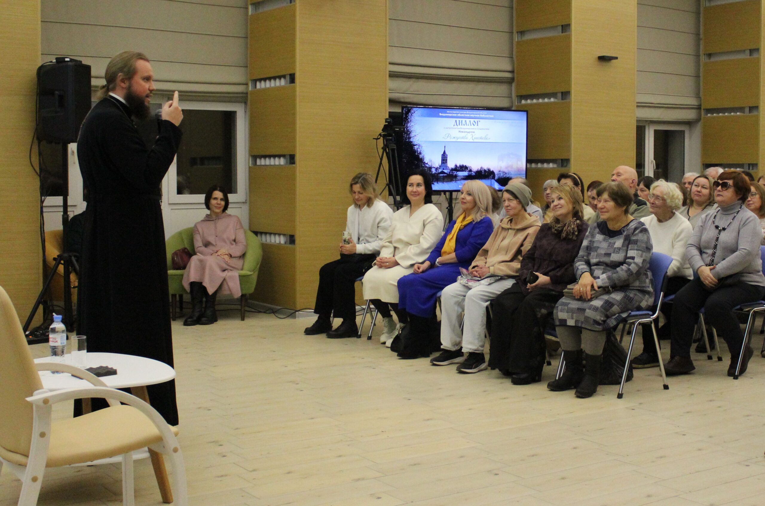 Разговор владыки Никандра с собравшимися проходил живо и непосредственно. Он в самом начале признался, что не готовился к нему, не писал плана, да и к ответственной полноценной роли духовного пастыря пока не готов себя отнести, хотя в силу своего положения им является. Тема Рождества – ожидания важного для всего мирового православного сообщества события – была связующей нитью всего разговора-размышления Владыки и зала. Он поднимал такие темы как значение чтения в жизни, школьного образования, творчества, говорил об отношениях между родителями и детьми и безусловности родительской любви, о важности ответов на детские вопросы для формирования благоприятного будущего; о понятии совести в уголовном процессуальном кодексе и о православии как истоке правосудия.