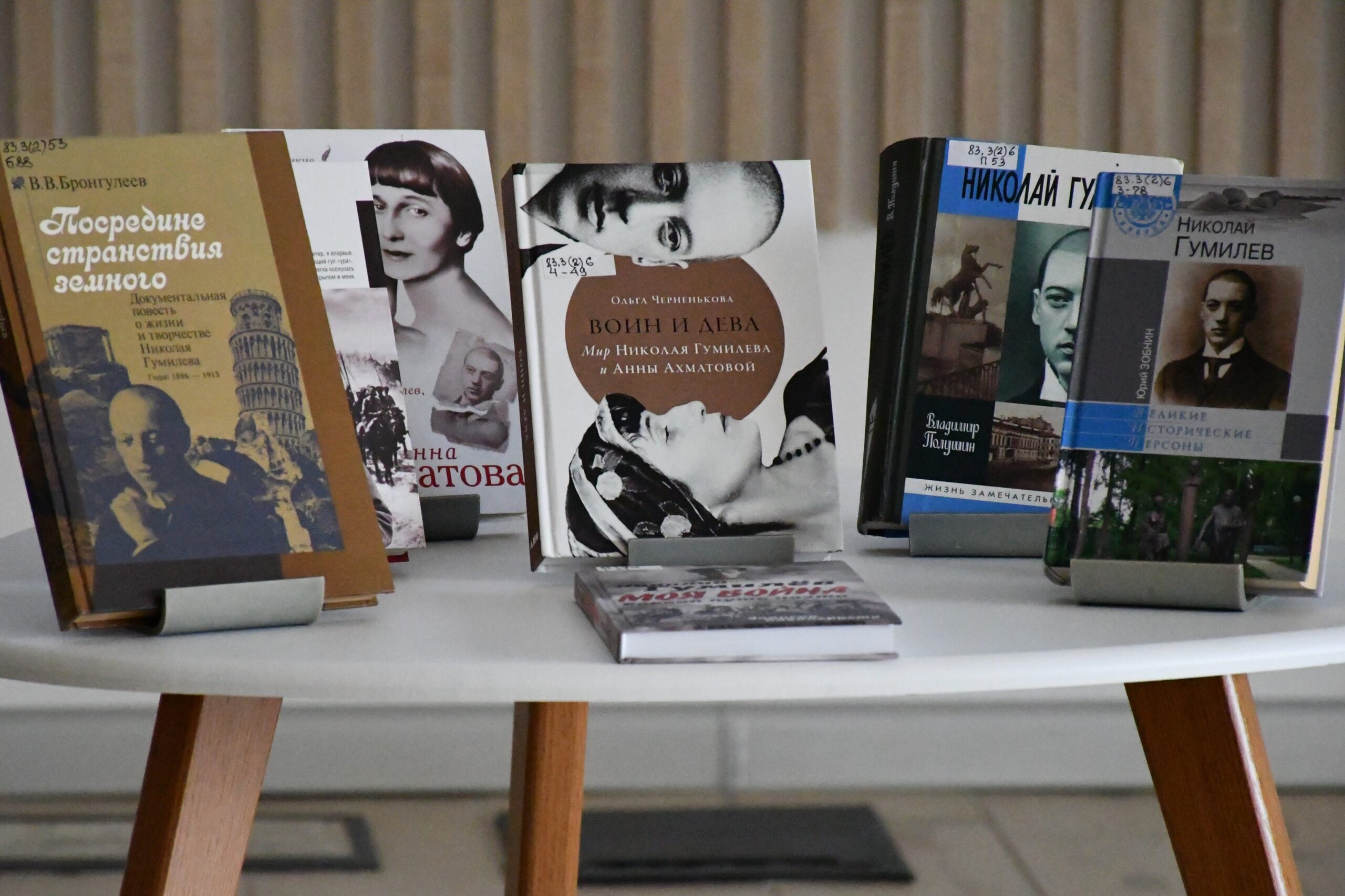 На мероприятии были представлены книги, посвящённые Н. Гумилёву и А. Ахматовой. Звучали романсы на стихи Н. Гумилёва («Это было, это было в те года…») и А. Ахматовой («Приходи на меня посмотреть», «Путник милый»). Композиции стали настоящим украшением вечера. Их исполнила поющий библиотекарь – Башмакова Марина.
