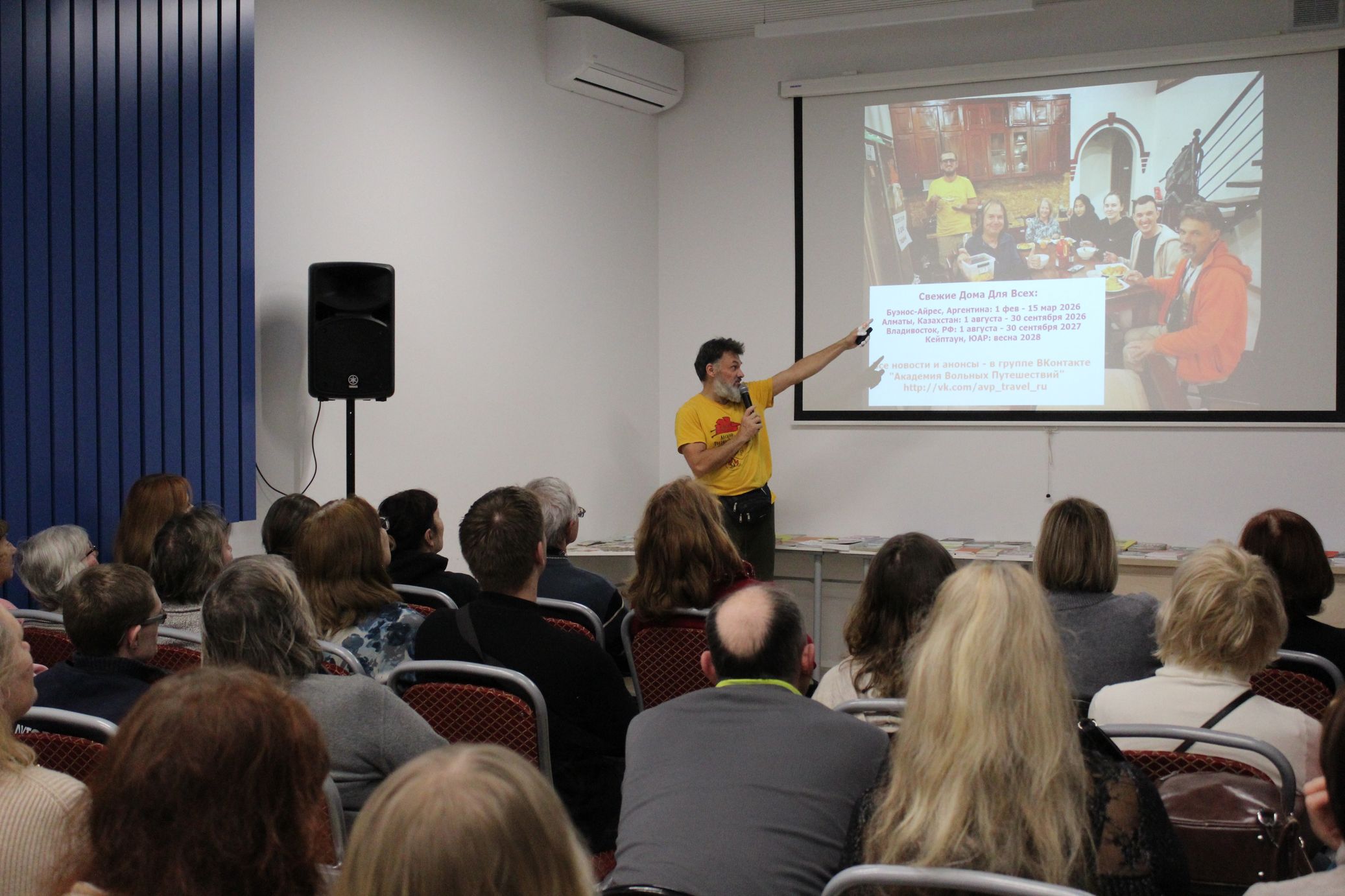 Путешественник Антон Кротов провёл четвёртую по счёту встречу-лекцию в нашей библиотеке. Антон – основатель философии вольных путешествий и экс-президент Академии Вольных Путешествий (АВП), а также идеолог и первый организатор Лесных трезвых сходов, изобретатель проекта «Дом для всех» и организатор 14 Домов в разных странах.