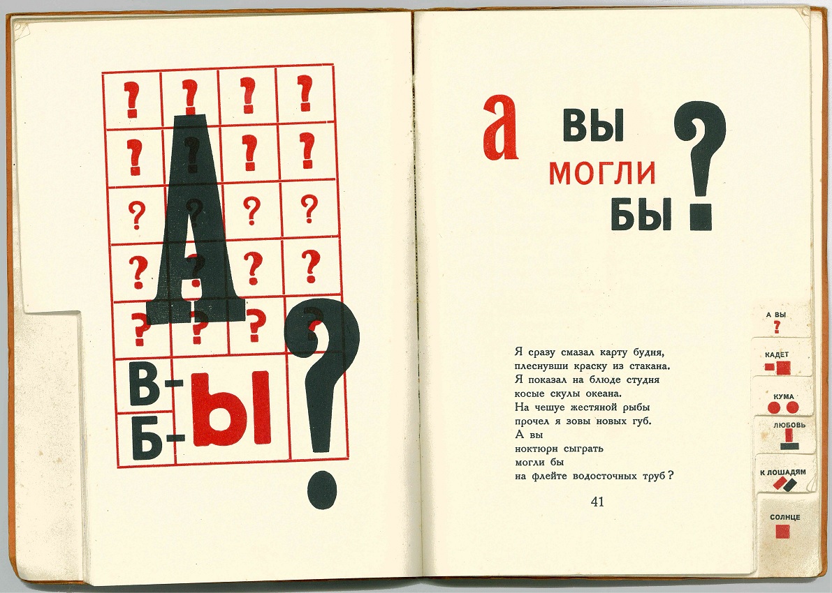 Источник: Маяковский, В. В. Для голоса / В. В. Маяковский; конструктор книги Л. Лисицкий. Берлин : типография Lutze & Vogt GMBH, 1923. 61 c.