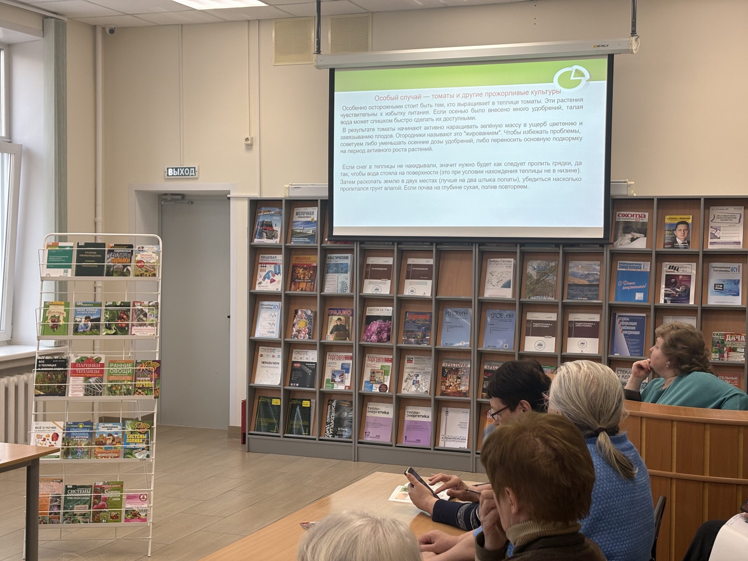 16 марта 2026 года в библиотеке прошла лекция для садоводов-любителей, посвященная весенним работам по подготовке почвы в теплице к новому огородному сезону.