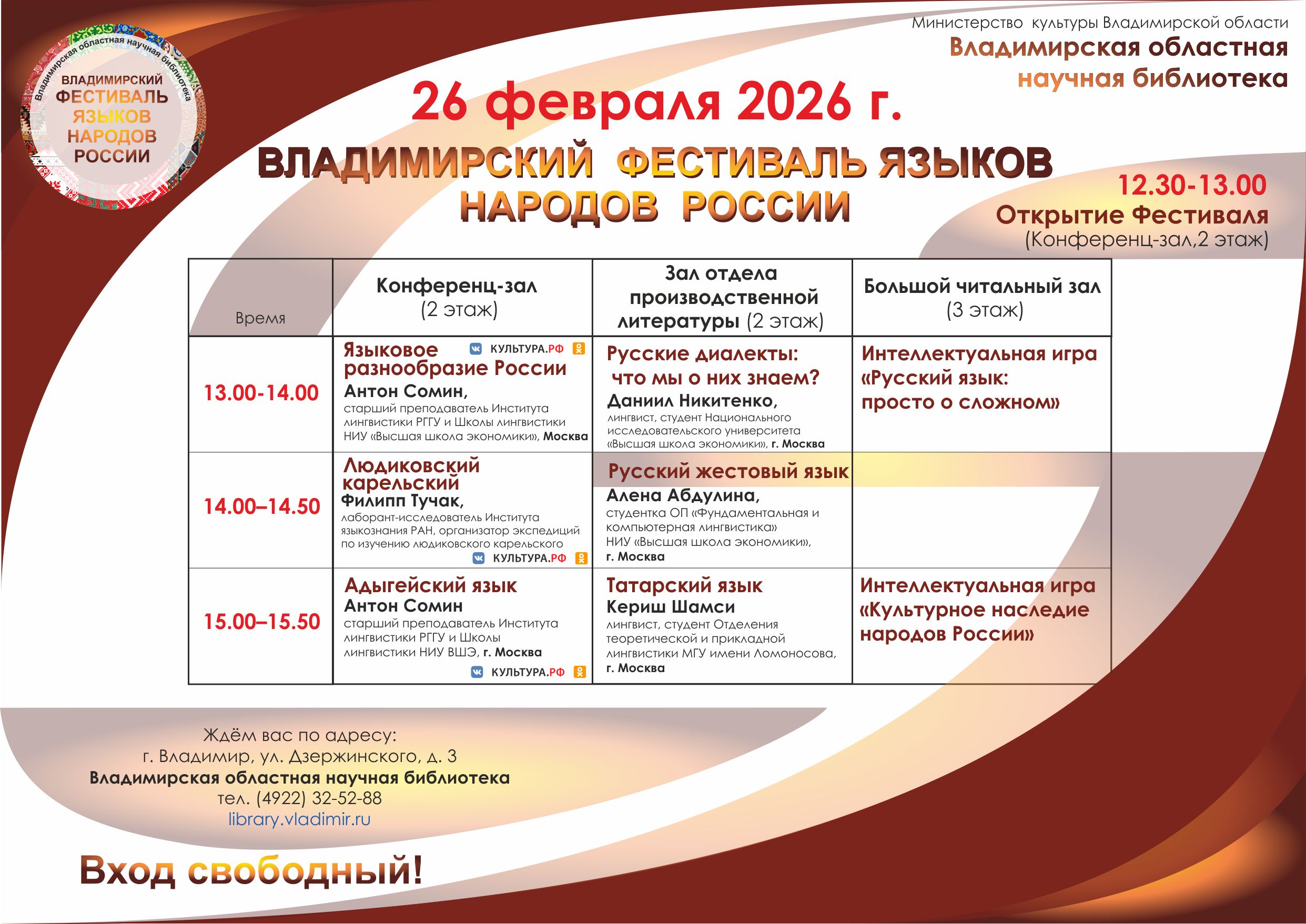 Ждём вас 26 февраля 2026 года в 12:30 во Владимирской областной научной библиотеке