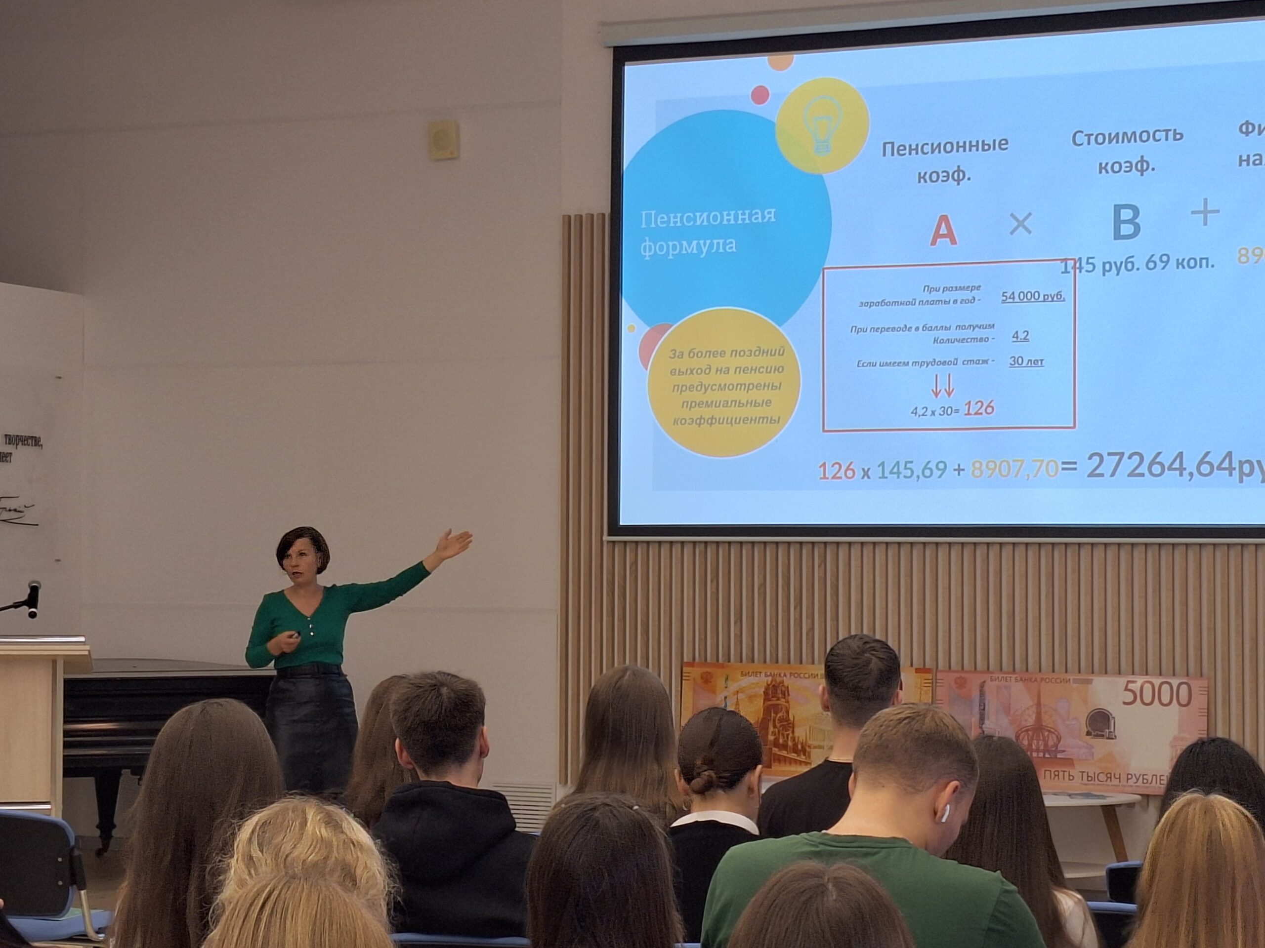 Итоговым стал пятый день НФГ, посвящённый вопросам социальной и пенсионной грамотности. Тема актуальная и затрагивает всех граждан России. На лекцию пришли читатели библиотеки и группы студентов. Представили своих делегатов учебные заведения города Владимира: РАНХиГС. ВлГУ, Владимирский базовый медицинский колледж, Владимирский строительный колледж.