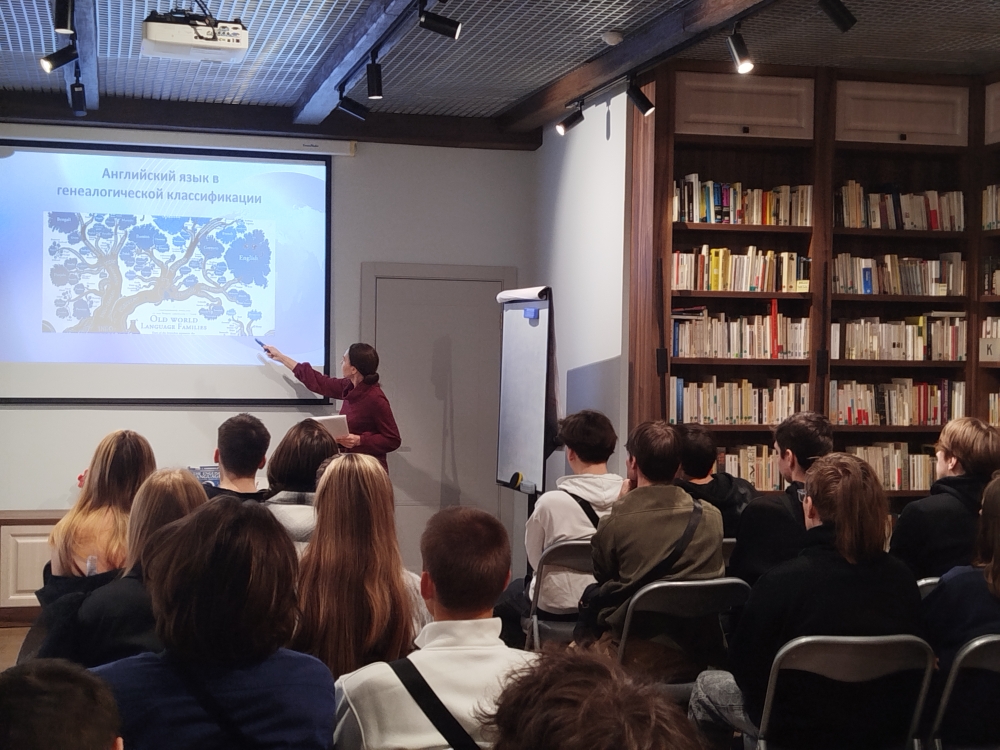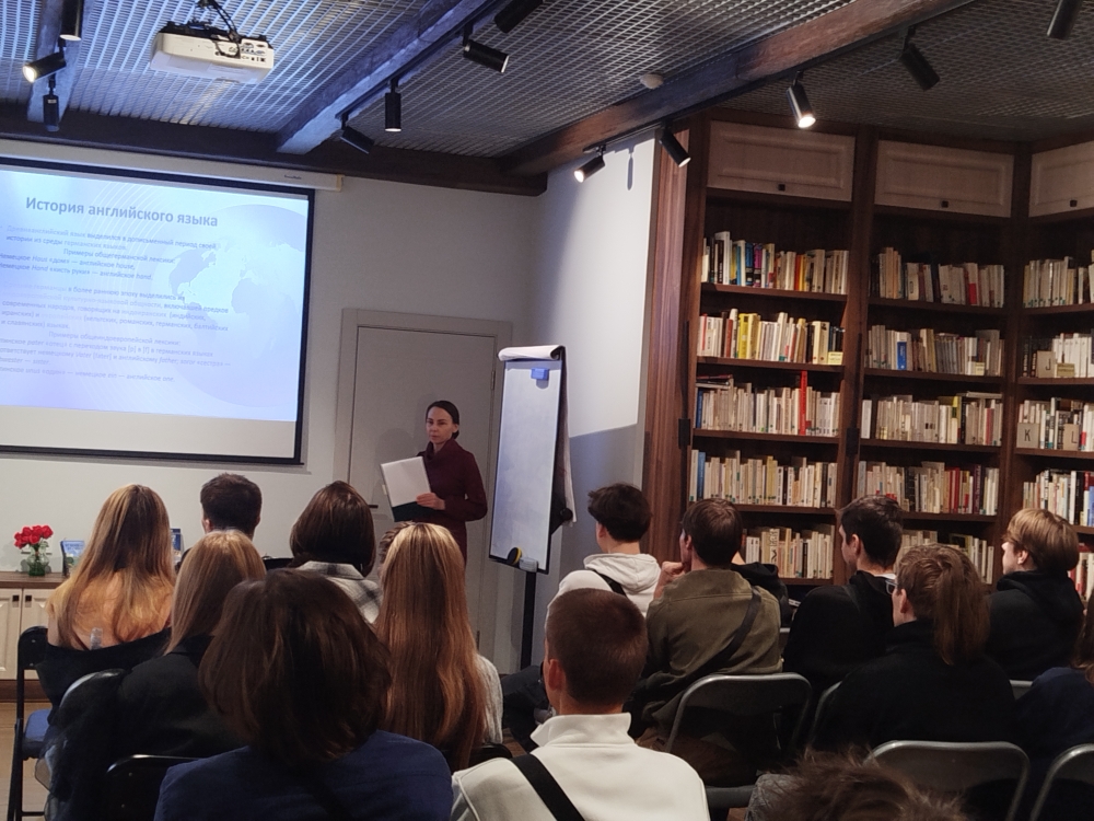 Вместе с ведущим ребята совершили экскурс в историю английского языка. Они рассмотрели начальный период формирования языка, а также проследили его дальнейшую судьбу на Британских островах. Слушатели узнали, из каких языков и почему английский заимствовал новые слова, какие изменения происходили в языке в разные периоды его истории.