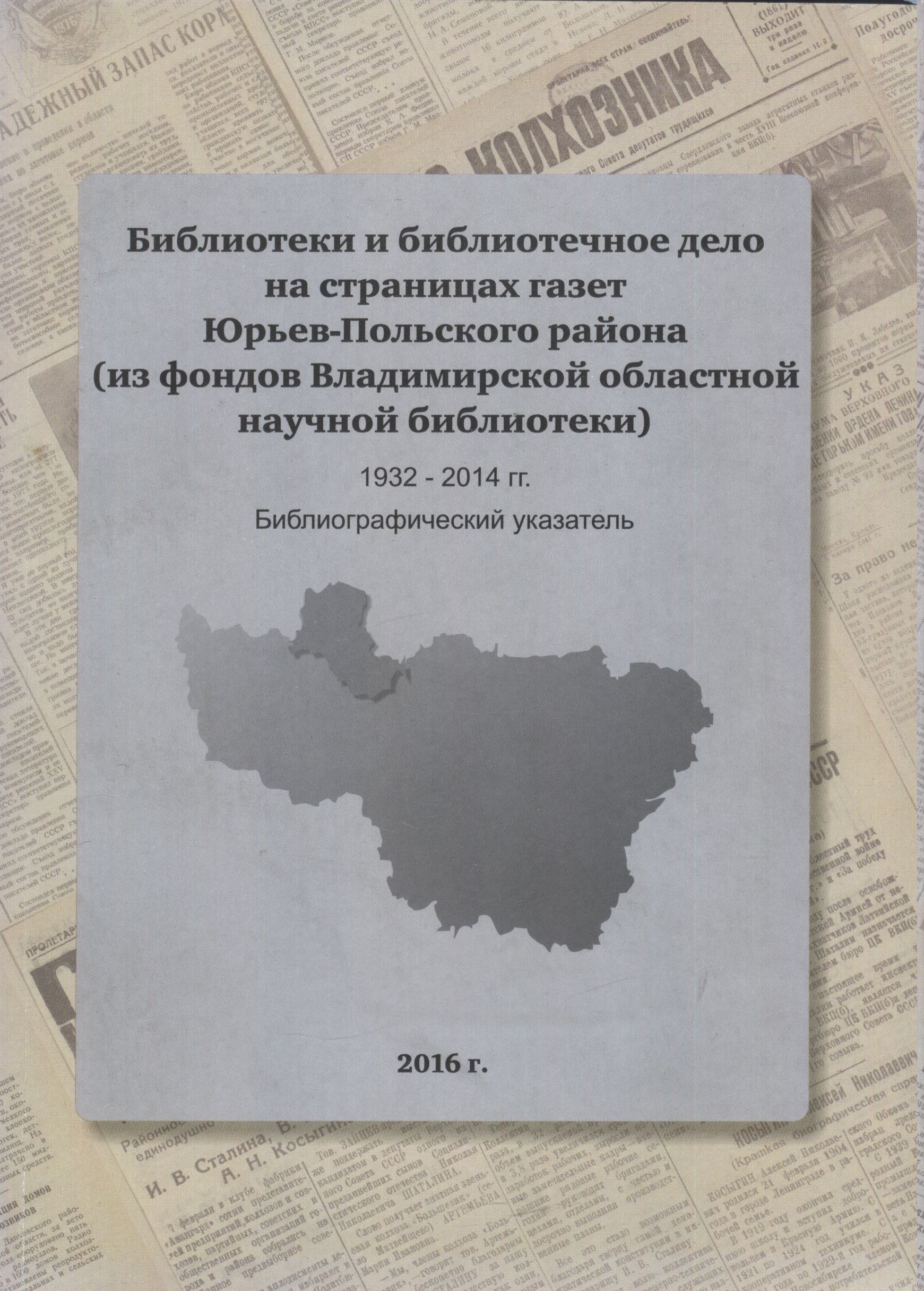 Источник: Библиотеки и библиотечное дело на страницах газет Юрьев-Польского района : (из фондов Владимирской областной научной библиотеки) [1932-2014 гг.] : библиографический указатель / [сост.: Т. И. Волкова и др.]. Владимир : ВОУНБ, 2016.