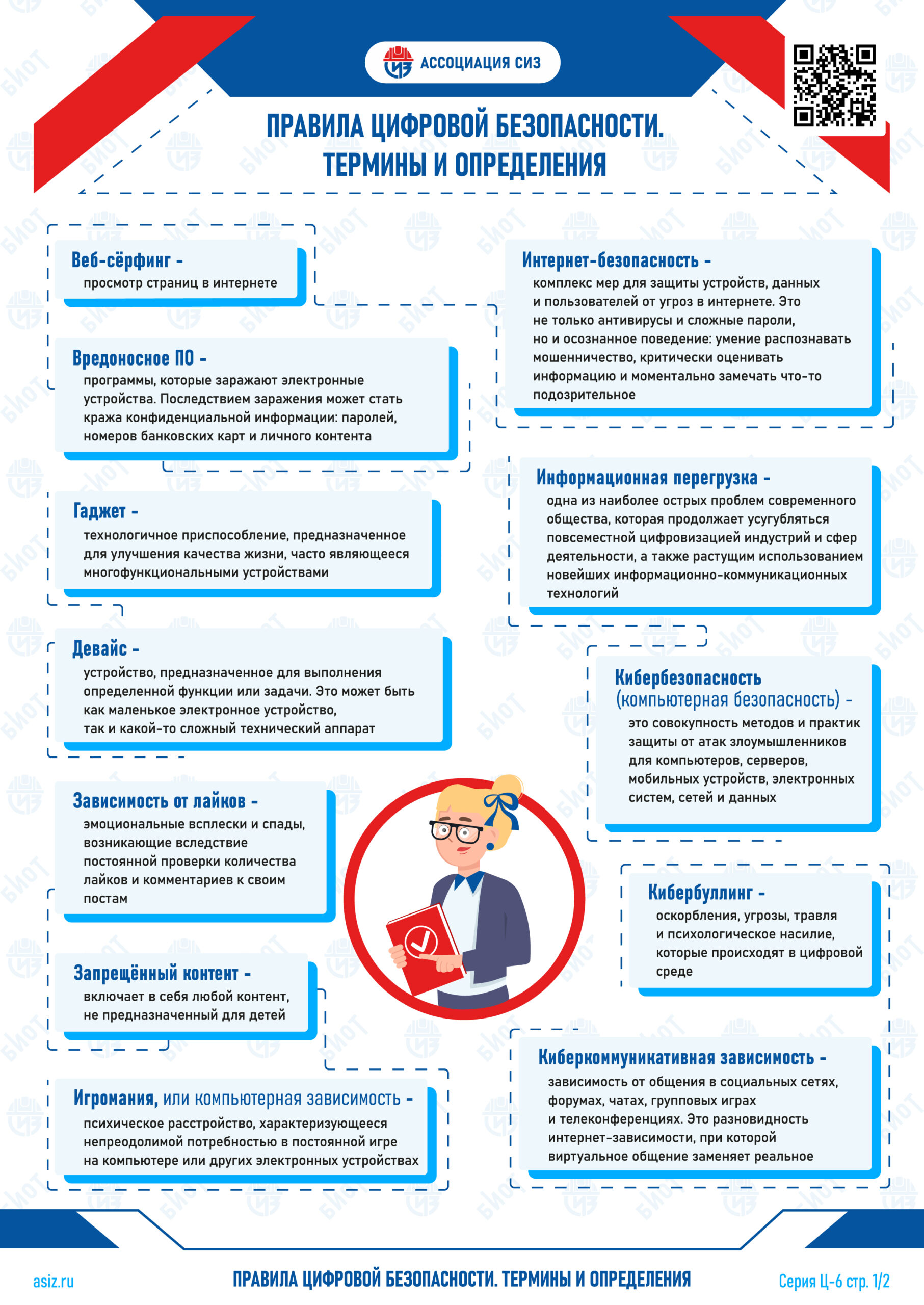 В представленных ниже инфографиках, разработанных Ассоциацией разработчиков, изготовителей и поставщиков средств индивидуальной защиты, представлены правила цифровой безопасности – простые, но эффективные рекомендации по защите личных данных и безопасному использованию гаджетов. Это базовые моменты, которые должен знать каждый человек, сталкивающийся с интернет-пространством.